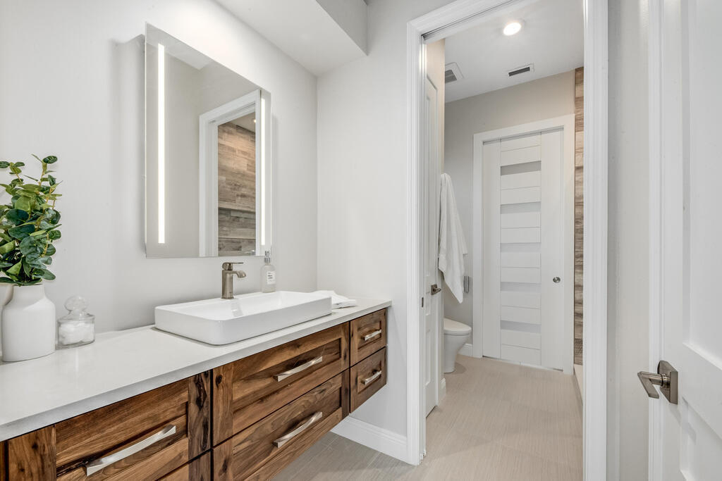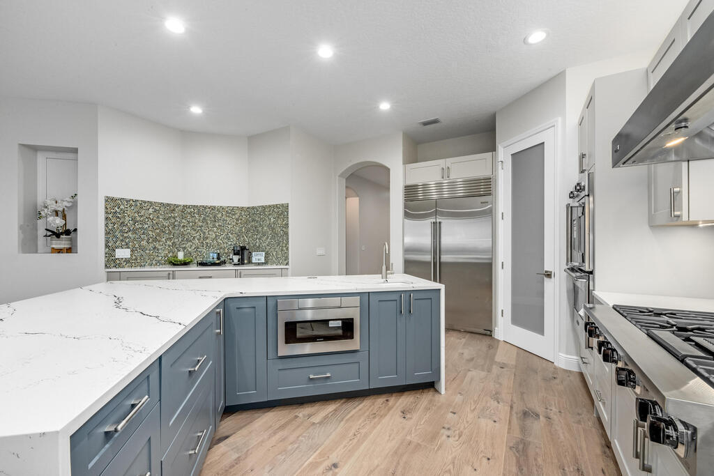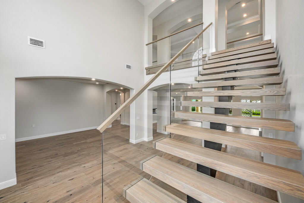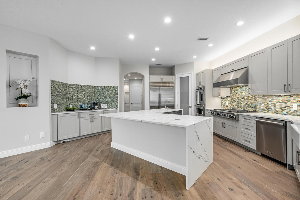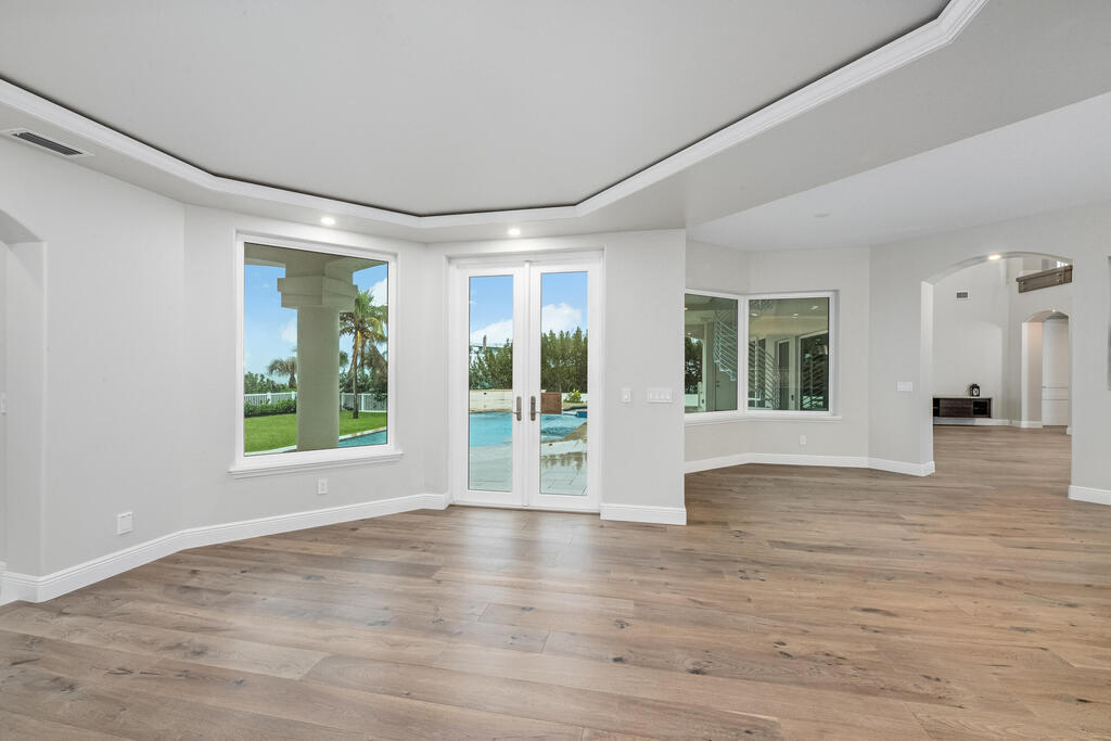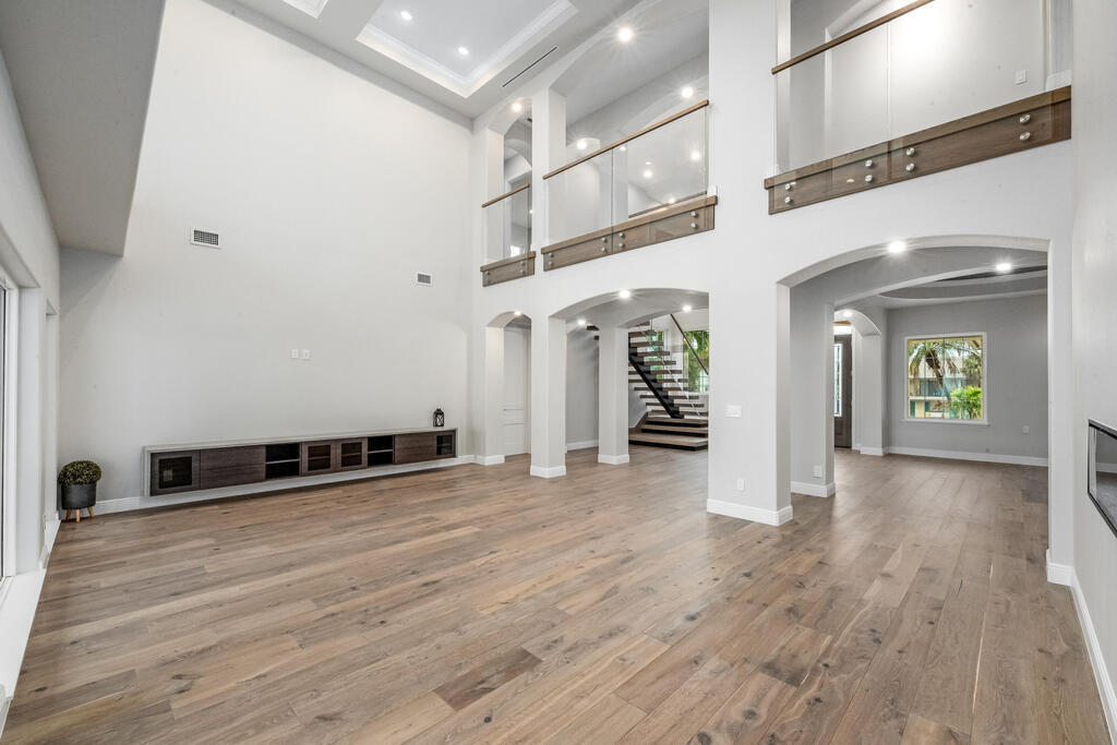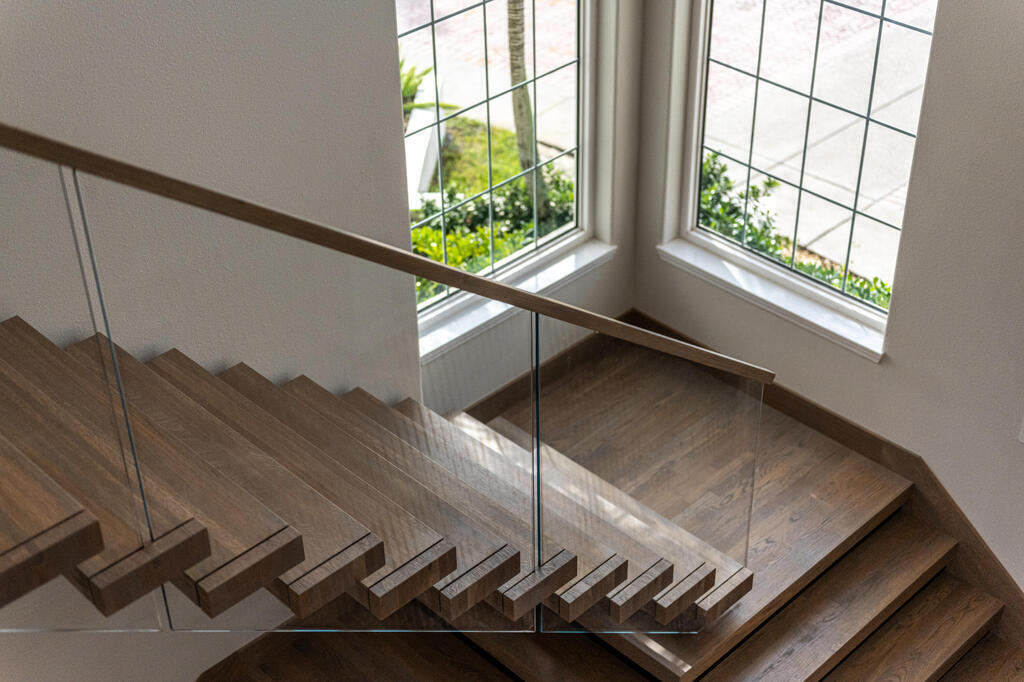 Welcome to this exquisite custom-built home, constructed in 1996, offering a generous living space of 4,758 sq ft. Nestled on a .58-acre lot with 100 feet of oceanfront, this property provides an idyllic coastal living. Recently remodeled and redesigned, this home showcases a modern aesthetic and impeccable craftsmanship. The highlight of the interior is the custom-built monostringer staircase, featuring 4'' white oak floating treads and elegant clear glass railings. This architectural masterpiece adds a touch of sophistication and serves as a focal point of the home. With two primary bedrooms, one on the main floor and another on the second floor, this home offers flexibility and convenience. The second-floor bedroom can be easily accessed via an elevator ensuring ease of movement throughout the home.The gourmet kitchen is a chef's dream, equipped with top-of-the-line Subzero refrigerator and Viking cooking appliances. The kitchen's open concept design allows for seamless