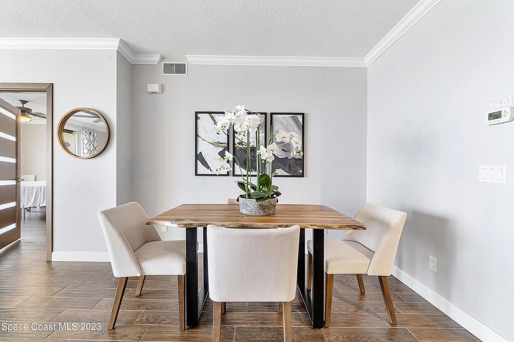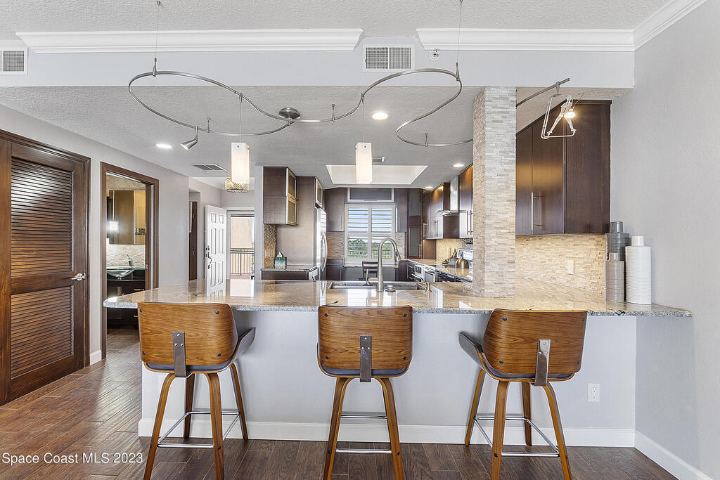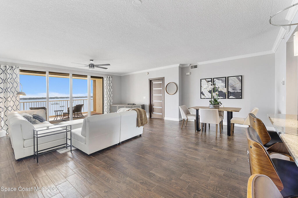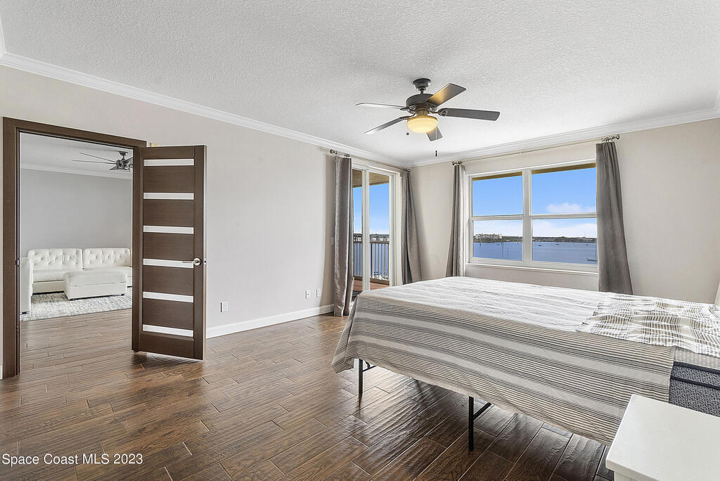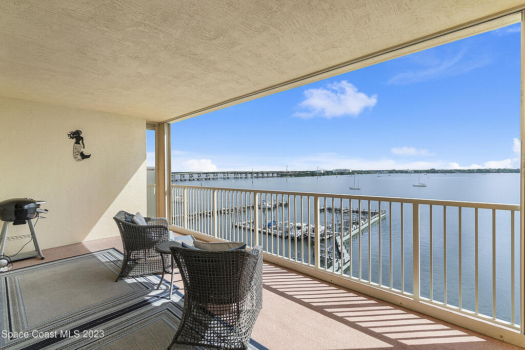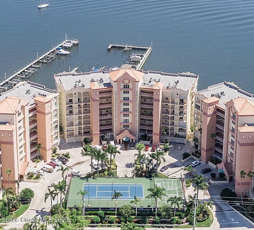 72 hour kick out clause in place. Elegantly renovated w/ luxury in mind. Unsurpassed direct river views allow you to experience sunrises, launches, fireworks & boat parades from your balcony. Chef's kitchen w/ wood cabinets, granite counters, ss appliances & built in desk. Updated LED lighting, custom wood doors, wood-look plank tile. Master Bedroom features walk-in closet w/ built-ins & slider to the expansive balcony. Both bathrooms have been completely redone w/ a modern traditional design. Sale includes BOAT SLIP! Explore nearby Cocoa Village for restaurants, shopping & entertainment. Oleander Pointe offers resort style amenities: pool, spa, riverside boardwalk, fitness center, sauna, tennis/basketball/pickleball courts, clubhouse with pool table, library & kitchen. This lively community is ready to welcome you home!