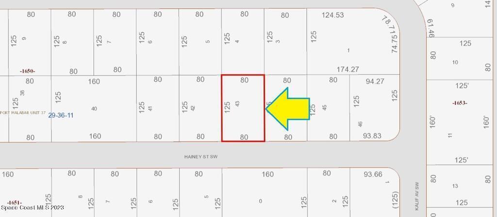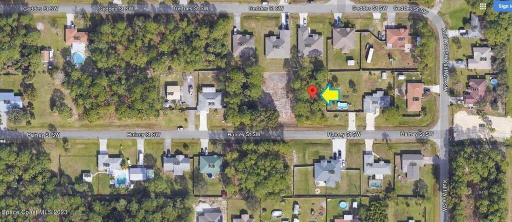 0.23 acre buildable residential lot available in Port Malabar Unit 37 of Palm Bay. Located in the southwest section, this lot is just 1.7 miles - 5 minutes to Jupiter Elementary School, 2.5 miles - 7 minutes to the Winn Dixie Supermarket, 11.9 miles - 27 minutes to Melbourne Airport, and 15 miles - 34 minutes to the beaches of Indialantic. From exit #176 of I-95 go west on Palm Bay Road for .7 miles, left on Minton Road for 2.5 miles, right on Malabar Road for 1 mile, left on Garvey Road for 1.3 miles, right on Harper Boulevard for .1 mile, left on Geoffrey Avenue, left on Geddes Street, road turns right and becomes Kalif, then right on Hainey Street. The lot will be on your right.