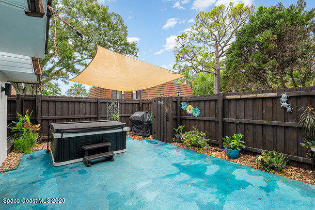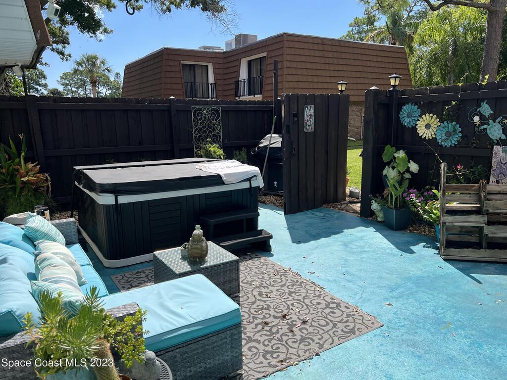 Seller Motivated! Will allow closing cost credit of 2500 with full price offer! This spacious 2 bdrm townhome has had some very nice updates that we hope you will appreciate! Fencing around the private courtyard replaced in summer of 2018 with extensions for storage. Open the gate and check out the portable hot tub perfect for a soak and stargazing after a long day at work! Electrical upgrade to exterior service line and 220 capacity installed. Modern dusk to dawn lighting in patio area and new exterior paint not to mention the vinyl cheeks and soffit on the Mansard roof system. New water heater 2020, new HVAC system 2019 and upgraded 7.5mm LVP with gold underlayment in living spaces excluding laundry room and bathroom which is tiled. New stained wood on stairway. Close to L3Harris, shopping, dining and I95. Kitchen and Full bath need updating, reflected in price