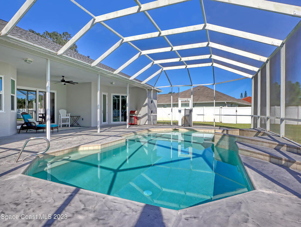This is your FLORIDA DREAM HOME! Seller is Motivated! Located in the popular Carriage Gate. Tranquil, spacious 4 bedrooms plus a den, 3 full bathrooms, pool home has tons of upgraded contemporary features including IMPACT windows & sliders. brand new roof 2023. Inside & out remodel was completed in 2021, gorgeous open concept family/nook & gourmet kitchen that has lots of bells & whistles including built-in double oven, pot filler, island, extended breakfast bar, walk-in pantry & breakfast nook with north sunrise. Primary bedroom has French doors to bathroom with walk-in tile shower, double sink quartz top vanity, free-standing soaking tub, huge closet. Paver circle drive & extended parking area off garage. Just over 1/2 acre fully fenced with double gate to back yard, full house generator in 2022 & 500-gal propane tank.
