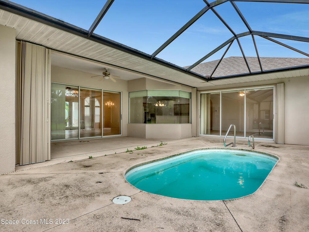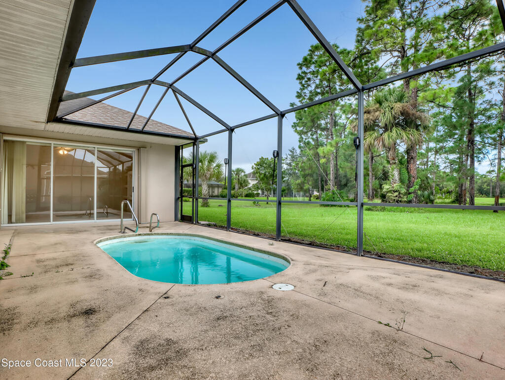 In this home you are in a wonderful serene setting that feels like you are out in the country yet only minutes from all conveniences. The interior has been freshly painted (11/23) Set on a 1/2 acre in a community of custom homes. Small fiberglass inground pool is perfect for your daily exercise or sipping cocktails. Has an outside shower and a half pool bath. Extra Large Screened in porch for the entertainers. The primary suite has double sinks, walk in for her and large closet for him. French doors to patio as well. Jacuzzi tub (pump needs to be looked at) and separate shower with Handicap bars if needed. Formal living, dining, a great office space. Eat in kitchen nook and huge den w a wall of built in shelves. 2 beds and a bath on opposite side. Tons of storage throughout.MUST SEE