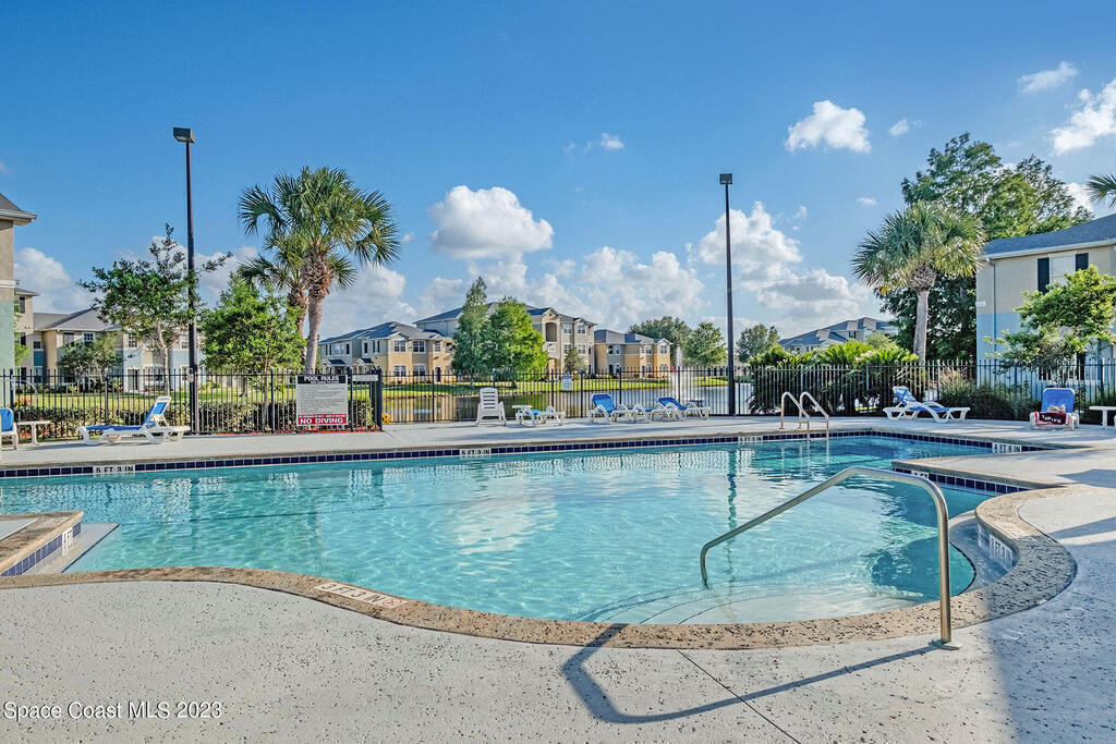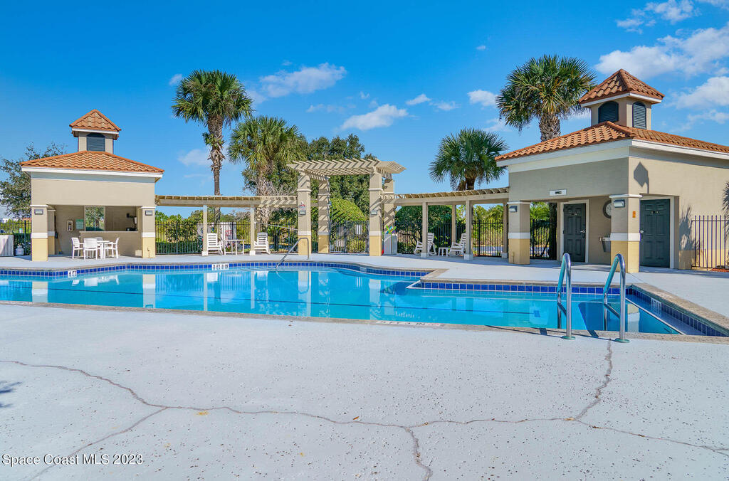 This gated community Viera East condo offers 2 bedrooms, 2 full bathrooms, a split floorplan, walk-in closets in both bedrooms, an in-unit laundry room, and a detached garage for parking, storing your car or toys. The development boasts a tranquil setting with a resort-style pool, fitness center, and clubhouse. It is conveniently situated near Viera diamond interchange, I95, shopping, and restaurants.
