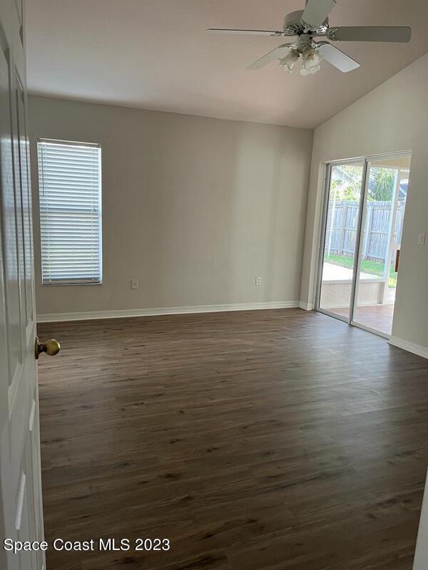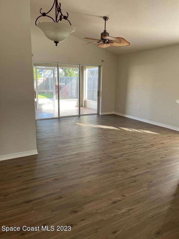 Exquisite 4-bedroom, 2-bathroom residence boasting an open floor plan, NEW laminate floor installed, NEW roof, 2-car garage and laundry area. Upon entry, you'll be captivated by the expansive living area, a delightful space for hosting family and friends. The kitchen seamlessly integrates with the dining/family room.A fenced backyard oasis awaits, complete with a covered lanai, perfect for entertaining or just enjoying your Florida weather.