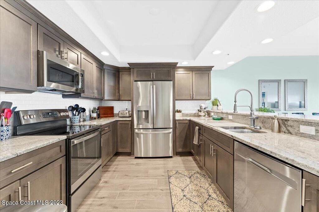 **72 Hour Kick-Out Clause in effect.**Beautiful Riverfront Condo with panoramic views from your private balcony facing the Indian River. From your living room, dining room or master bedroom, you have front row seats for rocket launches. This luxurious 3bd 2 bath, 3rd floor condo features beautiful tile floor, granite countertops, open floorplan, all new appliances, tastefully painted and designed. Boasting an elegant waterfront community pool and club house, all while being minutes from beaches, shopping and dining.