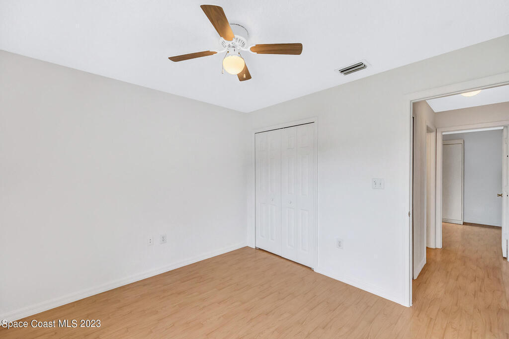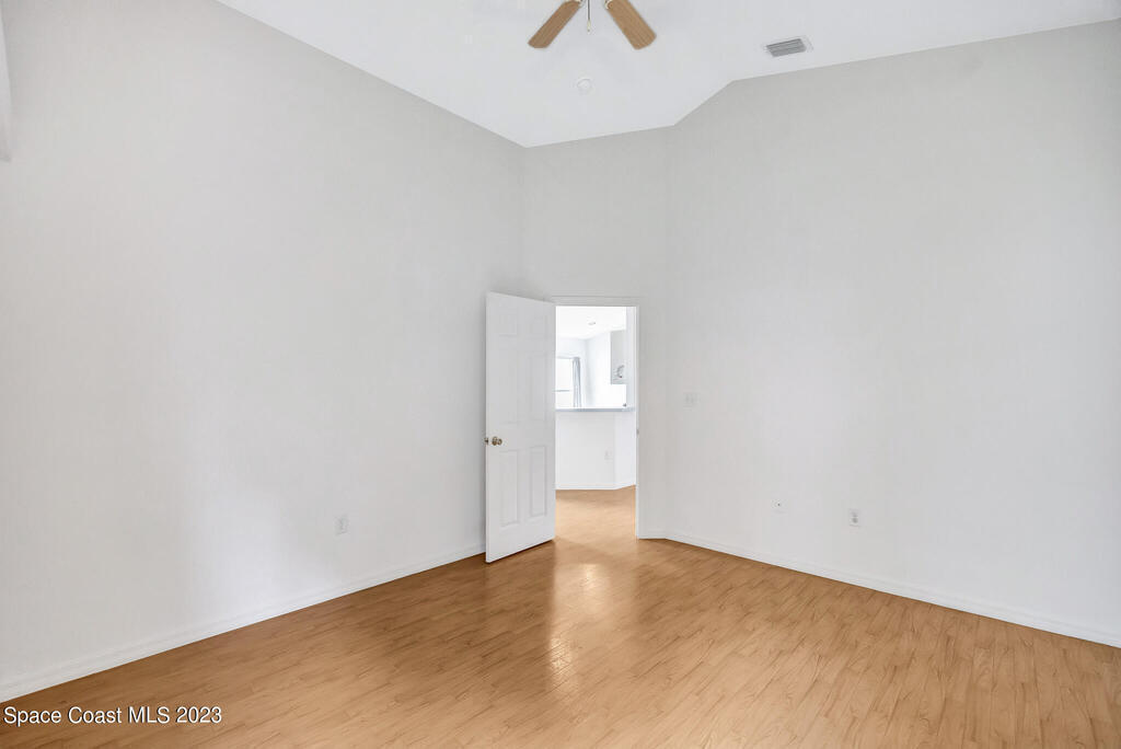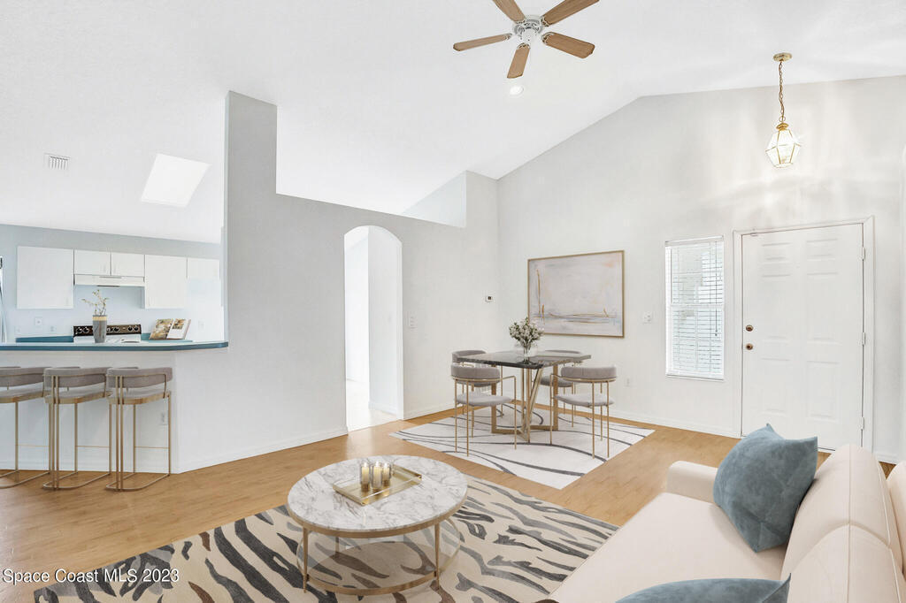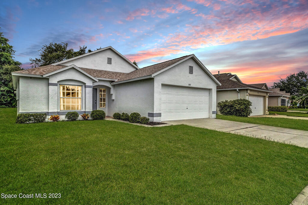 Situated in a gated community, this cozy home strikes the right balance between comfort and practicality. Experience the tranquility and security of this peaceful neighborhood in the heart of Palm Bay. The living spaces are well-lit and open, providing a relaxed atmosphere for both downtime and casual get-togethers. The kitchen is the hub of the home, offering plenty of counter space for your everyday cooking needs. The dining area is perfect for family meals. With three roomy bedrooms, including one with a custom-built Murphy bed, there's space for everyone. The primary suite comes with its own bathroom and a walk-in closet, making it a comfortable retreat.