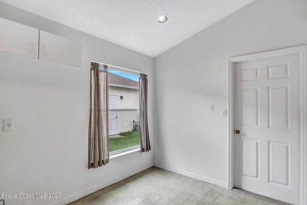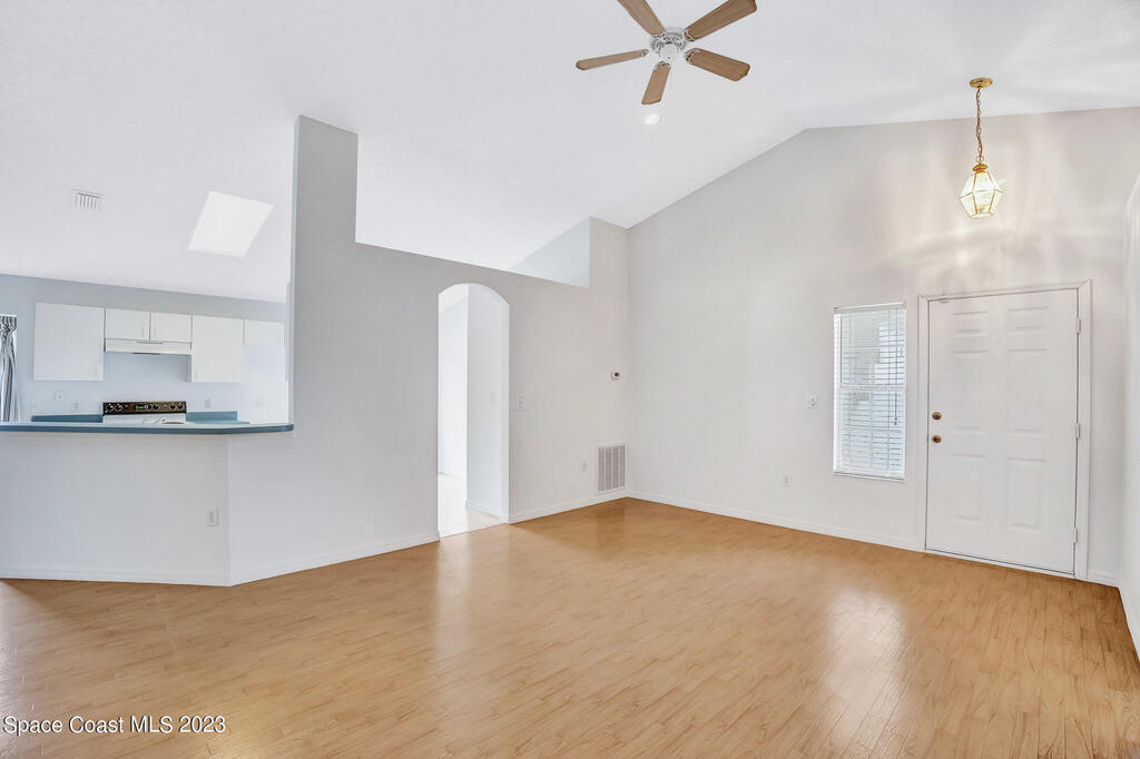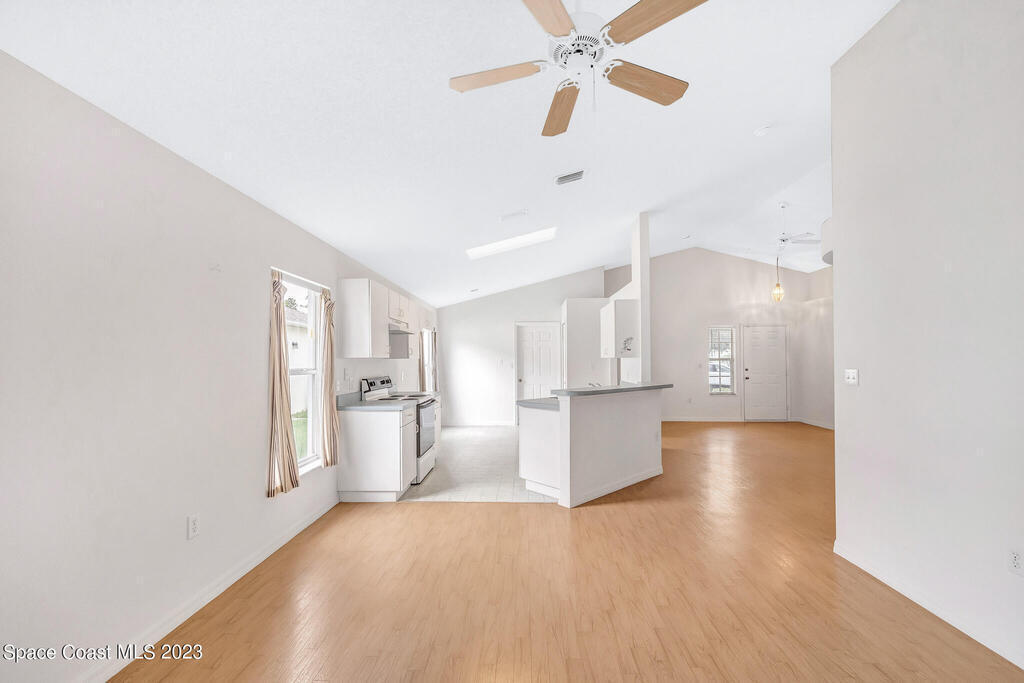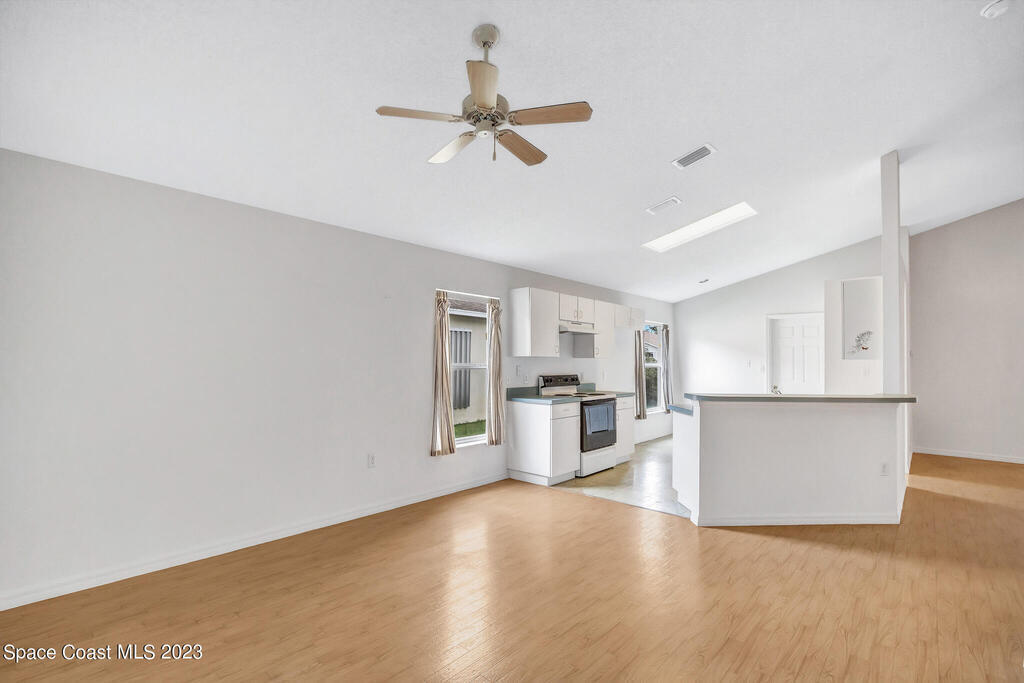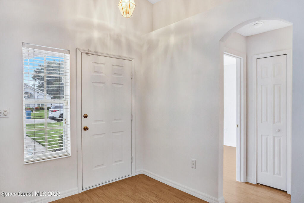 Situated in a gated community, this cozy home strikes the right balance between comfort and practicality. Experience the tranquility and security of this peaceful neighborhood in the heart of Palm Bay. The living spaces are well-lit and open, providing a relaxed atmosphere for both downtime and casual get-togethers. The kitchen is the hub of the home, offering plenty of counter space for your everyday cooking needs. The dining area is perfect for family meals. With three roomy bedrooms, including one with a custom-built Murphy bed, there's space for everyone. The primary suite comes with its own bathroom and a walk-in closet, making it a comfortable retreat.