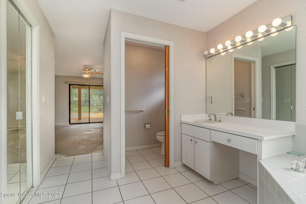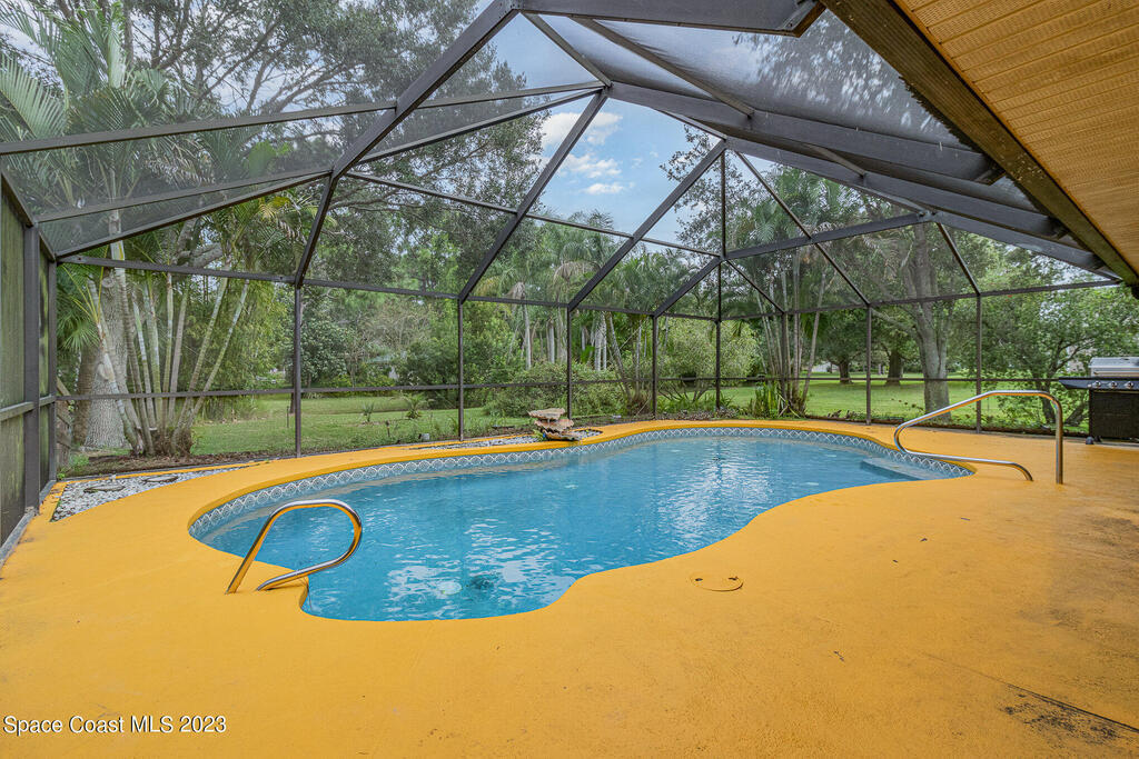 POOL HOME on 1 acre in Lake Washington! Solid concrete block home w/ brick exterior and side load garage. Entering this home you will be welcomed into an open great rm w/ high ceilings and sliders overlooking the screen enclosed heated pool w/ waterfall feature. The spacious primary suite also has sliders leading to the pool area. Primary bath has two vanities, a jetted tub and separate shower. Lg functional kitchen w/ pantry lots of counter space, and a bkfst nook. Tile throughout, wood floor in 3rd bdrm, but great room, primary suite and bdrm #2 need flooring. Hurricane shutters, walk-in closet in garage, laundry rm w/ utility sink and built-in cabinets. Brand new a/c. Roof 2019. Water heater 2014. Priced to sell w/ recent appraisal completed.