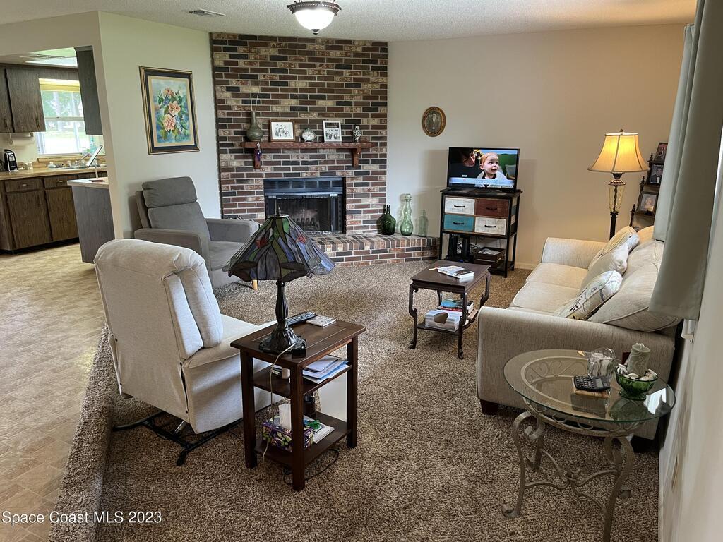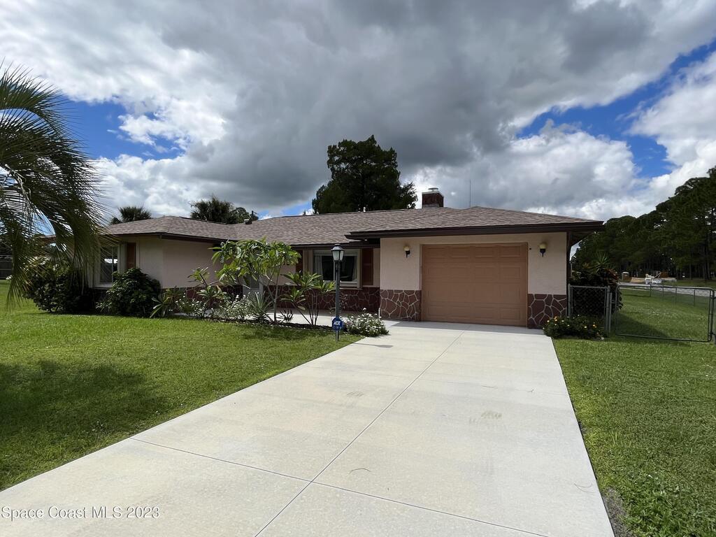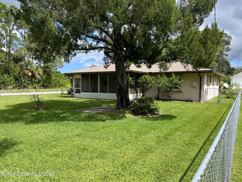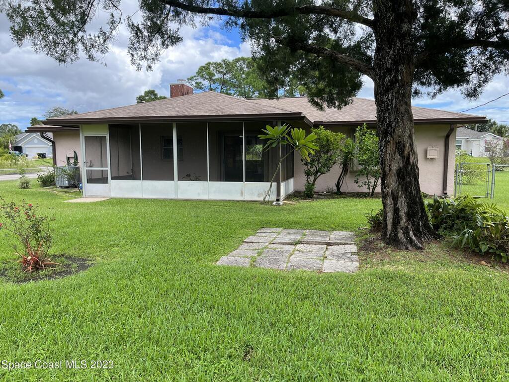 ''BIG PRICE ADJUSTMENT'' Charming 2 Bedroom, 2 Bath Home with 1 Car Garage on a corner Lot. Enter the home, and step down into a cozy living area with a gorgeous corner brick fireplace. The master bedroom has spacious double closets and includes an ensuite bathroom for added convenience. A large screened porch, perfect for relaxing and enjoying the beautiful Florida weather! The home had a new roof in 2021 and recent improvements, including new driveway/culvert/hurricane shutters. NO HOA!!! Bring your boats/RV. The adjacent lot is being sold separately for $48,500. Close to Malabar Rd shopping, restaurants, beaches, and minutes to I-95