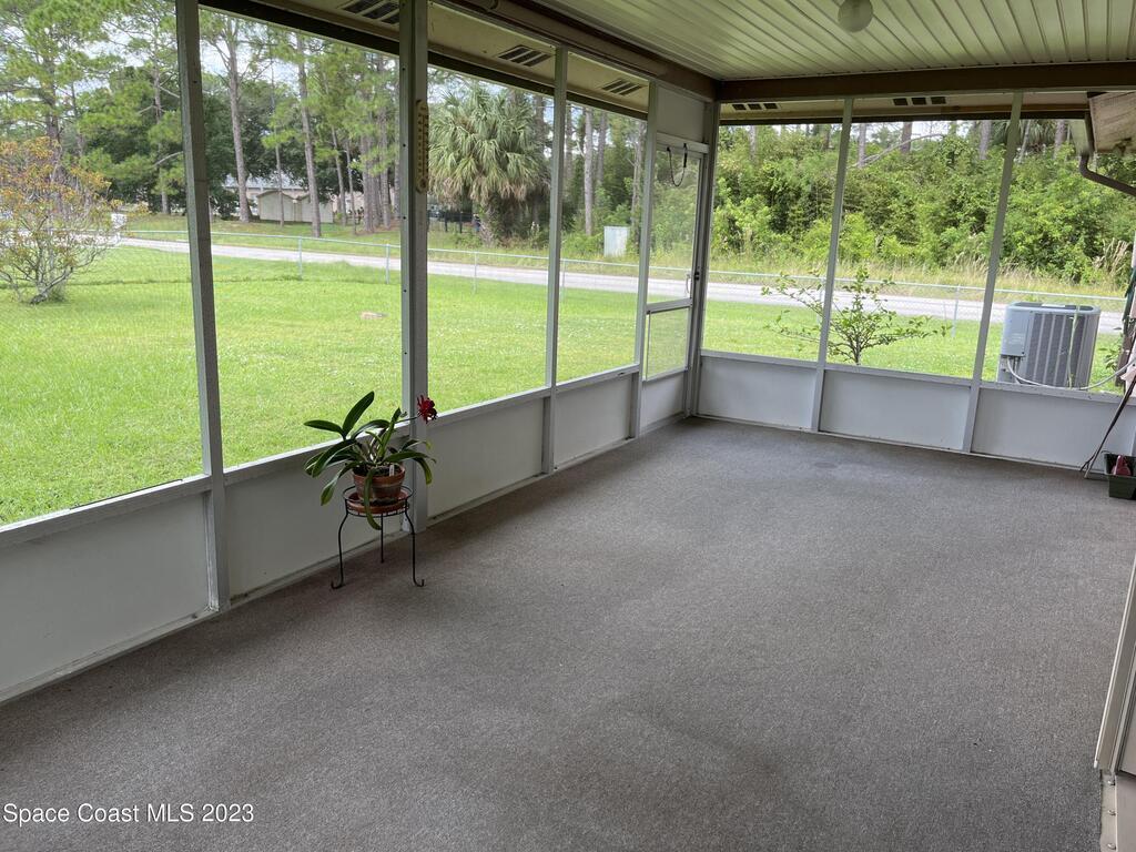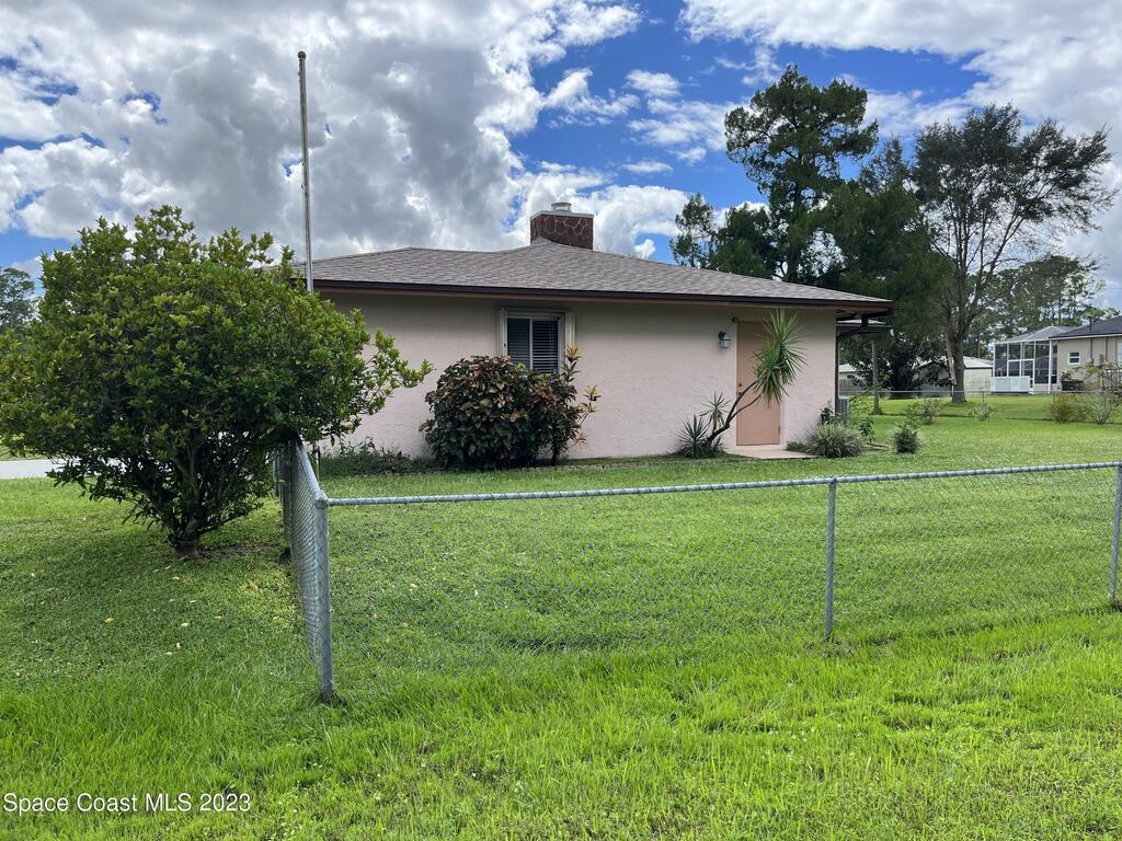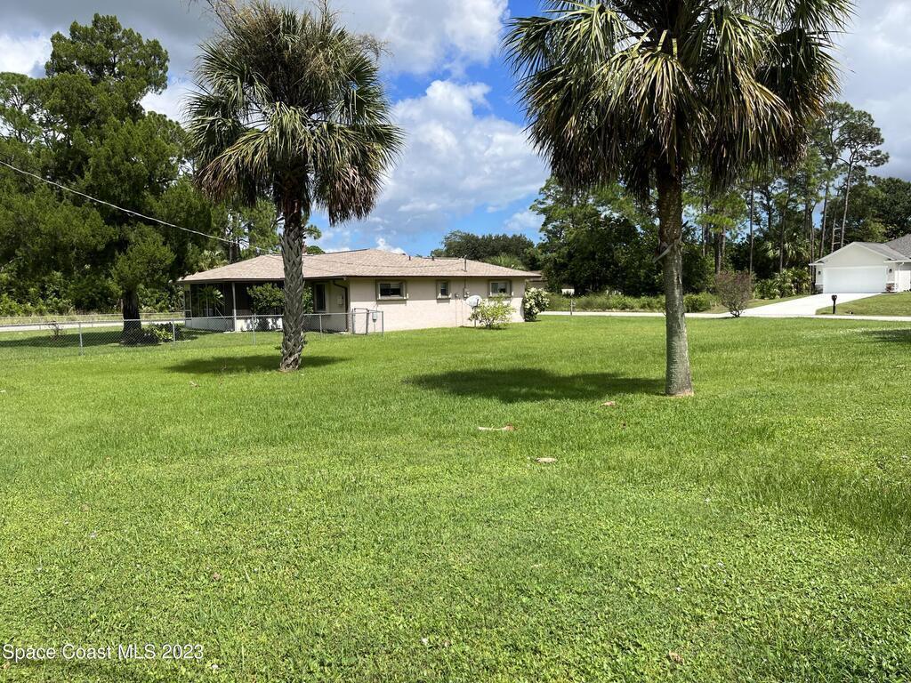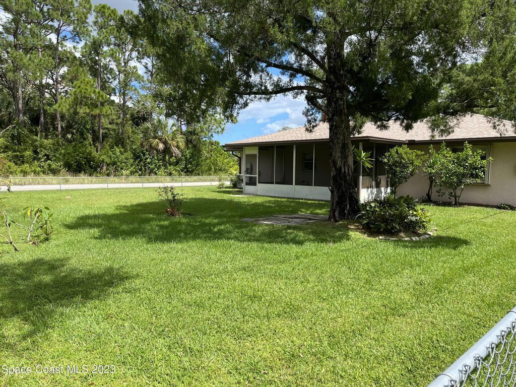 ''BIG PRICE ADJUSTMENT'' Charming 2 Bedroom, 2 Bath Home with 1 Car Garage on a corner Lot. Enter the home, and step down into a cozy living area with a gorgeous corner brick fireplace. The master bedroom has spacious double closets and includes an ensuite bathroom for added convenience. A large screened porch, perfect for relaxing and enjoying the beautiful Florida weather! The home had a new roof in 2021 and recent improvements, including new driveway/culvert/hurricane shutters. NO HOA!!! Bring your boats/RV. The adjacent lot is being sold separately for $48,500. Close to Malabar Rd shopping, restaurants, beaches, and minutes to I-95