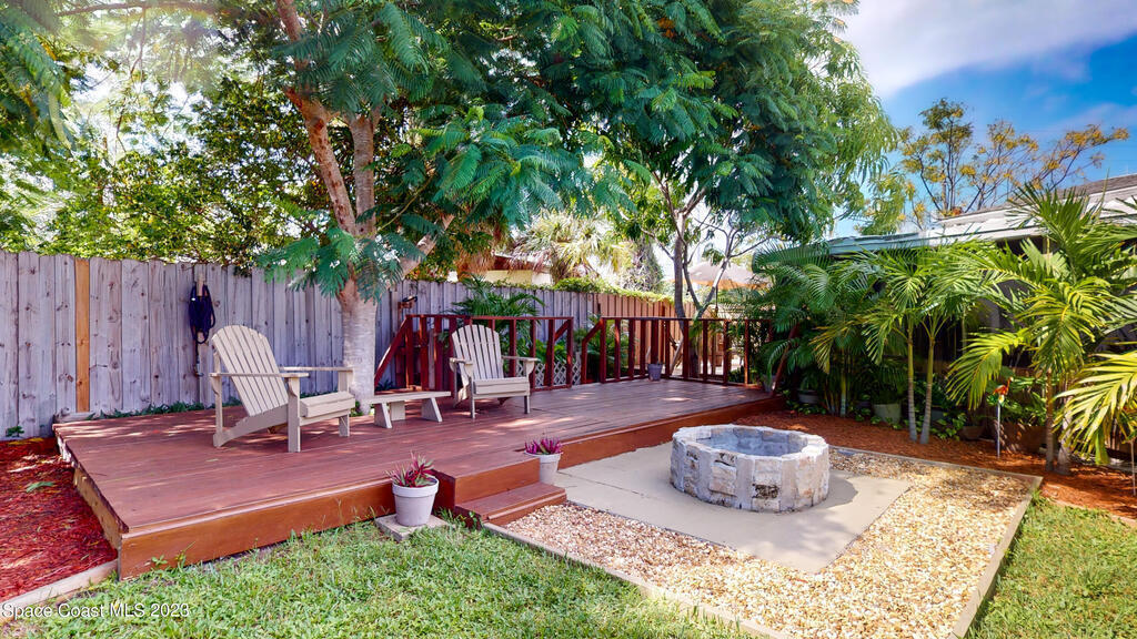 Enjoy this fenced in outdoor oasis surrounded by luscious landscaping! High impact windows all around with interior upgrades through out the home. Only minutes from the beach, highways, shops and more! Enjoy proximity to the Eau Gallie Art District and restaurants. Immerse yourself in the outdoor decks where you can enjoy the starry nights and beautiful sunsets in the privacy of this backyard escape around the custom made fire pit. Enjoy this charming corner lot home with original oak floors. Schedule a tour today!