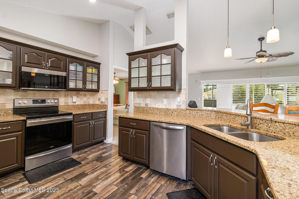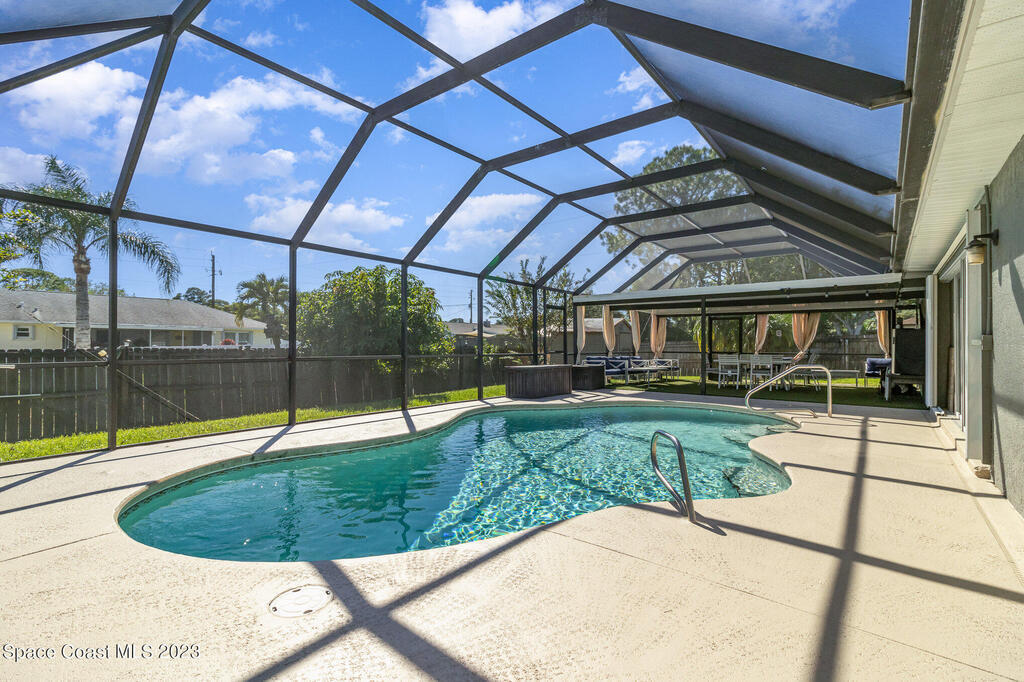 Buyer's contingency fell through. Their loss is your gain! Your Oasis awaits! Massive curb-appeal upon arrival of this stunning pool-home on a corner-lot property.Freshly-painted exterior, extended driveway, Paver sitting area & long front porch for peaceful leisure.New Carpet and flooring throughout this 1565 sq ft 3/2/2, split plan.Renovated kitchen with beautiful glass-front cabinetry and granite countertops. Lots of natural light in the living room & plantation shutters.Master bath is newly remodeled, walk-in tiled shower with nook & built-in seat, beautiful fixture and Master bedroom has a walk-in closet and french doors leading to the gorgeous covered pool. New Roof, New AC (2022) and Accordian Shutters!