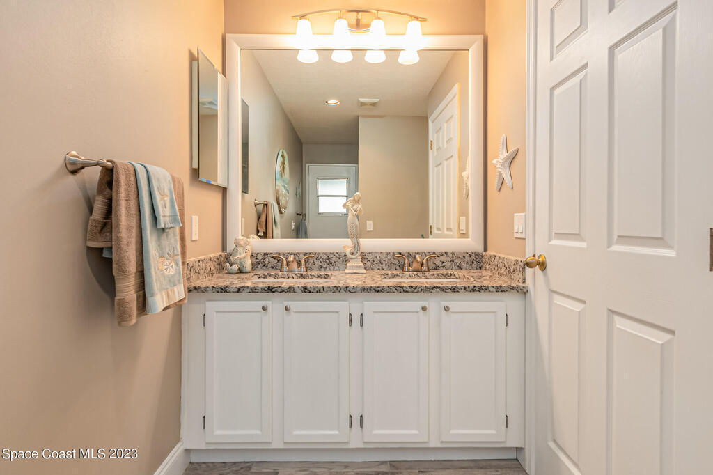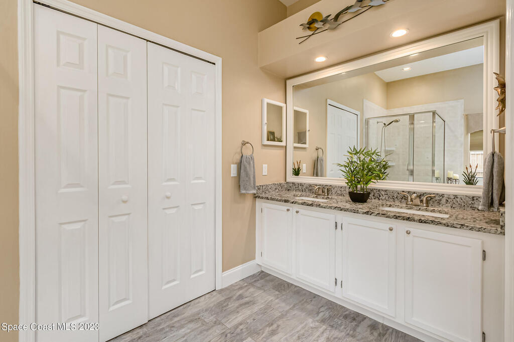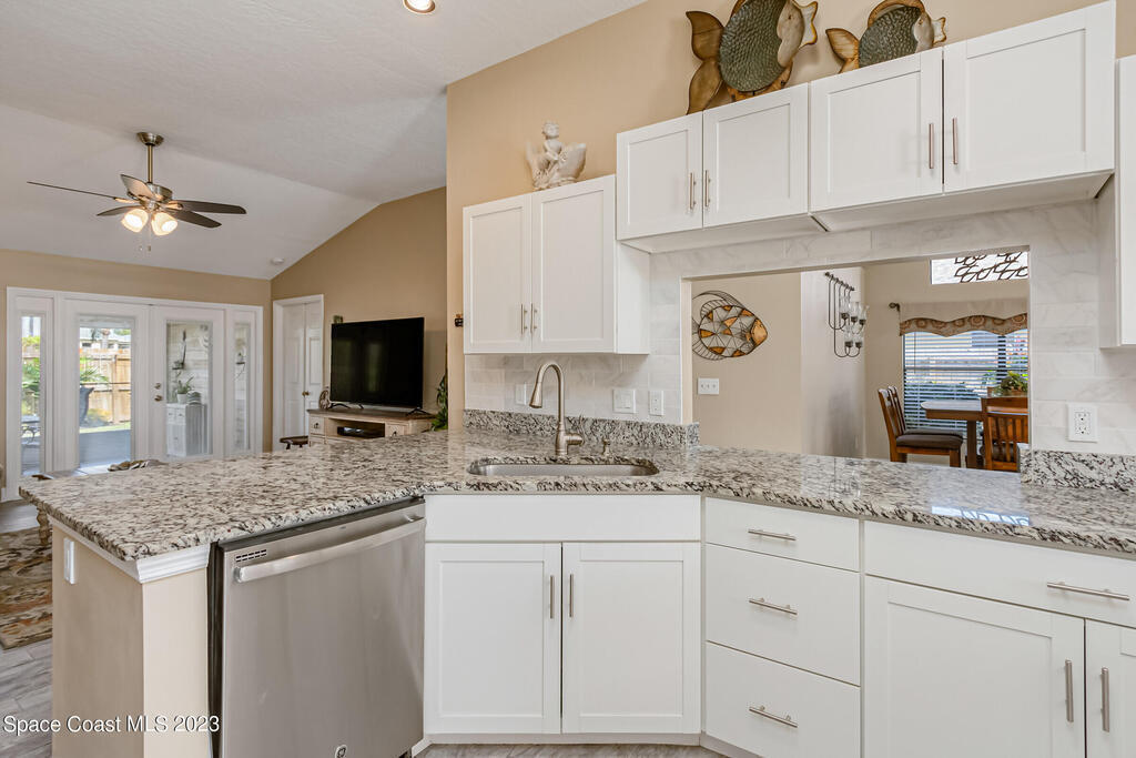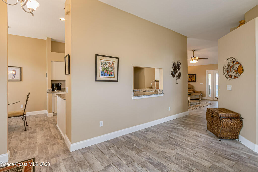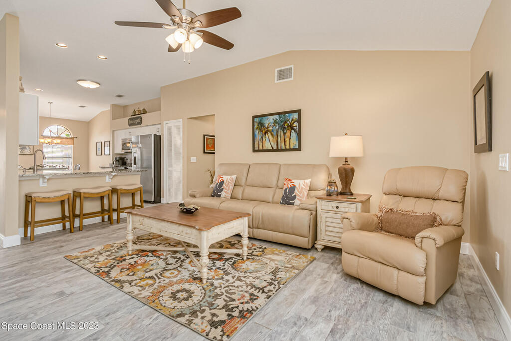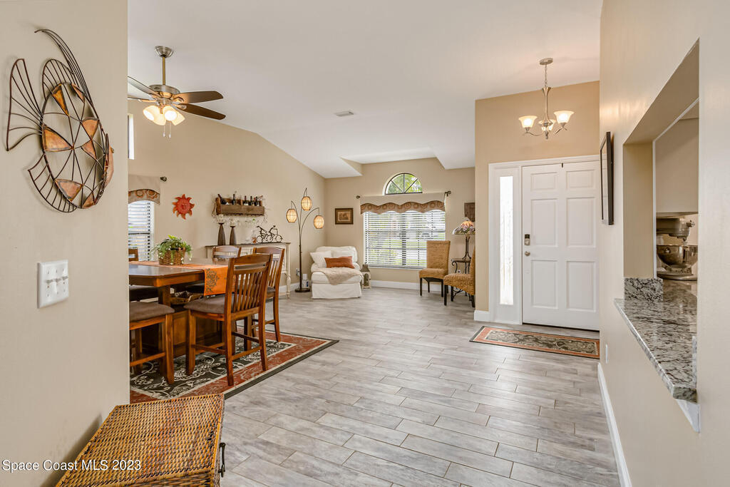 Accepting Backups.HOME WARRANTY offered on this 4 BR, concrete block, updated and meticulously maintained home situated close to everything Viera has to offer! Having undergone a complete remodel just a few years ago including the roof and HVAC, this beauty is turn-key and ready for you to call it home! The gorgeous paver walkway and impeccable curb-appeal leading to the front door and designer color palate of the new exterior paint welcomes you to come inside to be greeted by a bright and airy open floor-plan. The updated wood-look tile floors with all new baseboards blend beautifully with the modernized ,neutral, and fully-renovated kitchen. New white shaker cabinets beautifully showcase the high-end stainless-steel appliances and granite counters. The added benefit of natural gas allows you