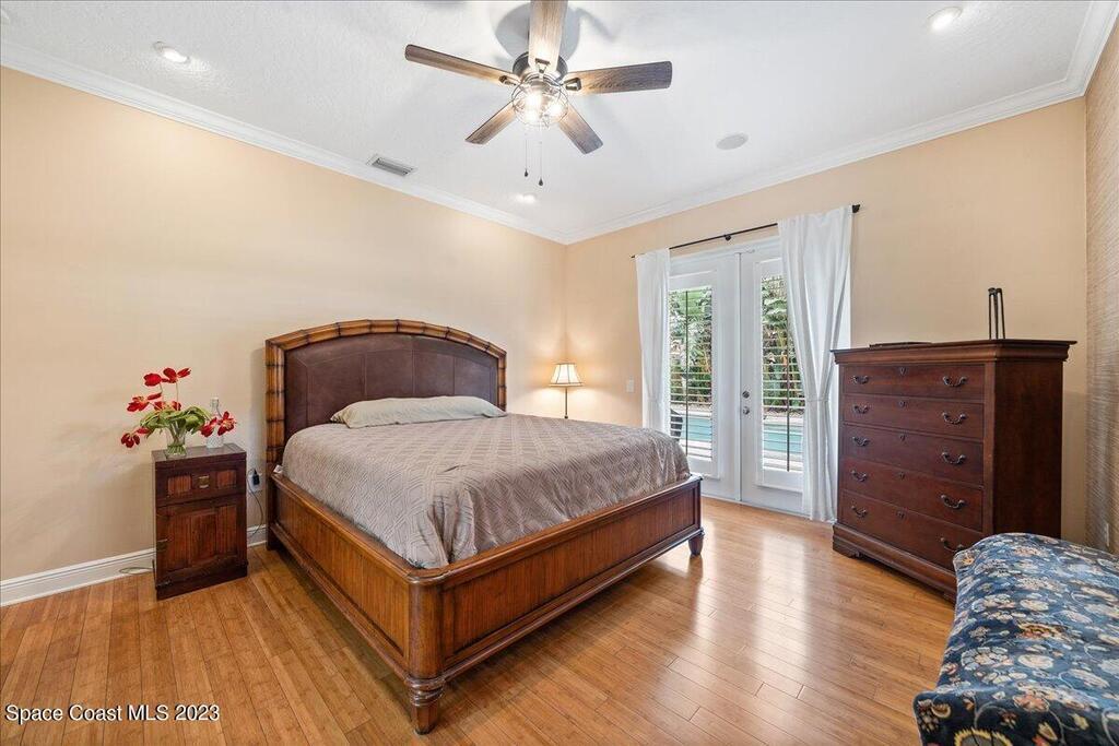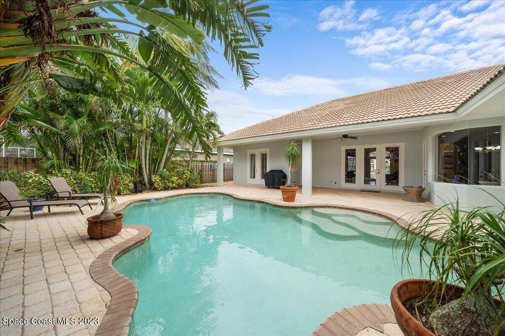 Just a 13-minute walk to the ocean is this immaculate pool home in the highly desired gated Cloisters community. The backyard is an oasis of tranquility with lush landscaping, complete with a refreshing pool, outdoor shower & full pool bath - perfect for lounging in the sun or hosting a pool party. The privacy fence & tropical landscaping ensure your own personal retreat. Spacious kitchen offers beautiful cabinets, a gas cooktop, granite counters, & newer SS appliances. Fantastic views of the Lagoon-Shaped Pool & an amazing Tropical Garden from the front doors & most rooms of the property. This home features new exterior paint, maintenance-free tile & bamboo wood flooring, spacious walk-in closets with Custom built-ins, a gas-burning fireplace, tray ceilings & Crown Molding.