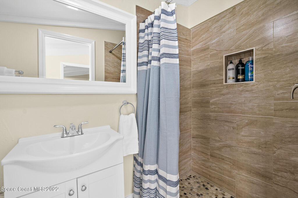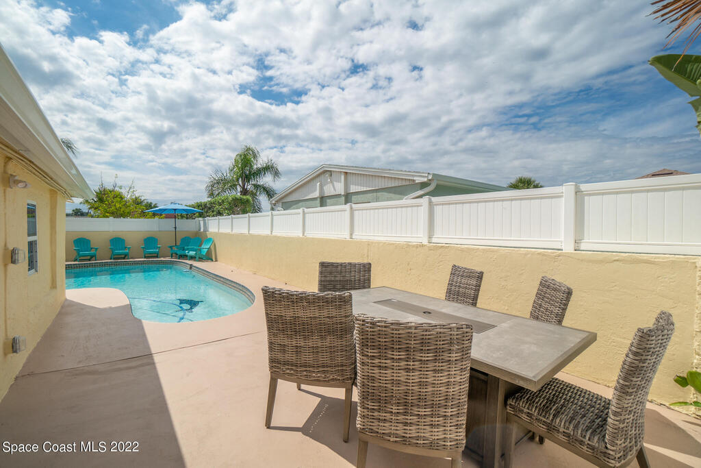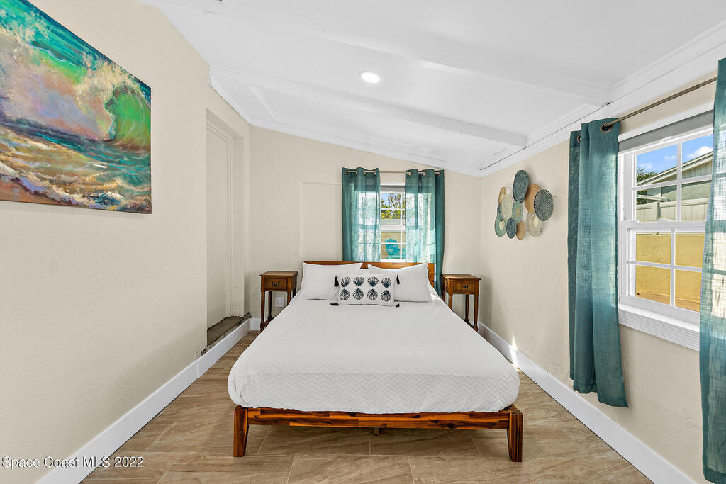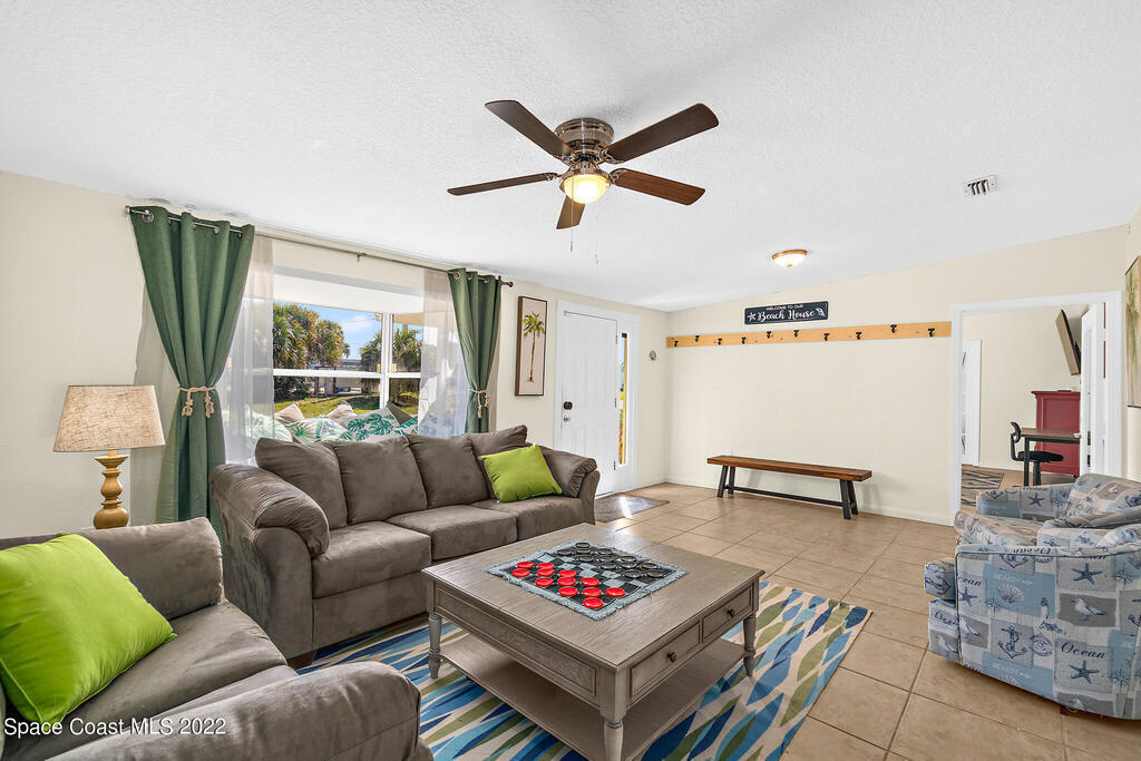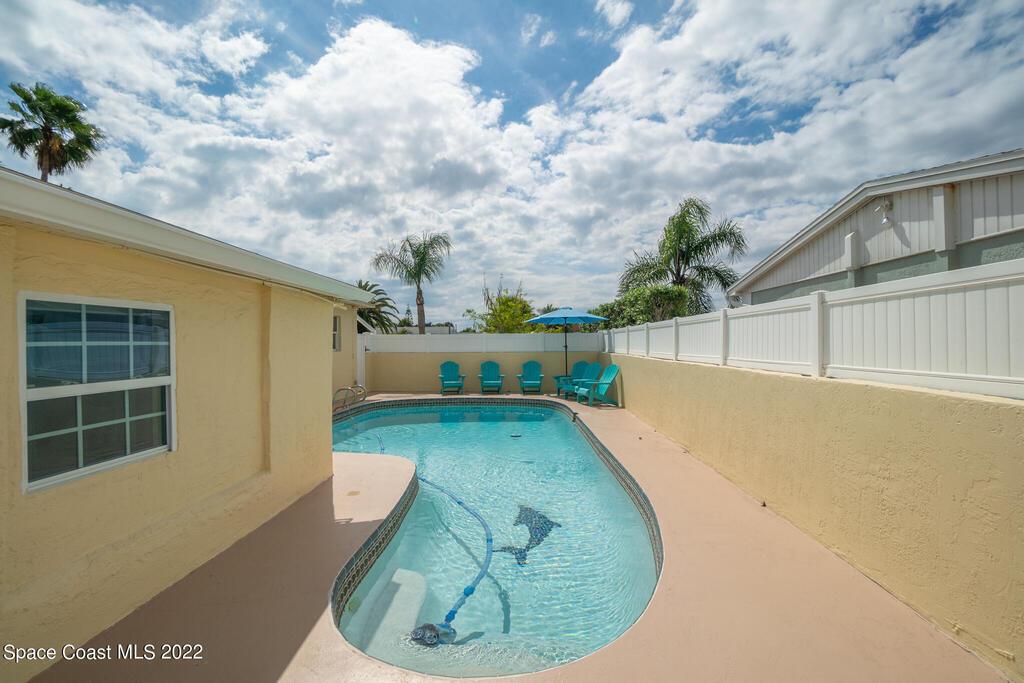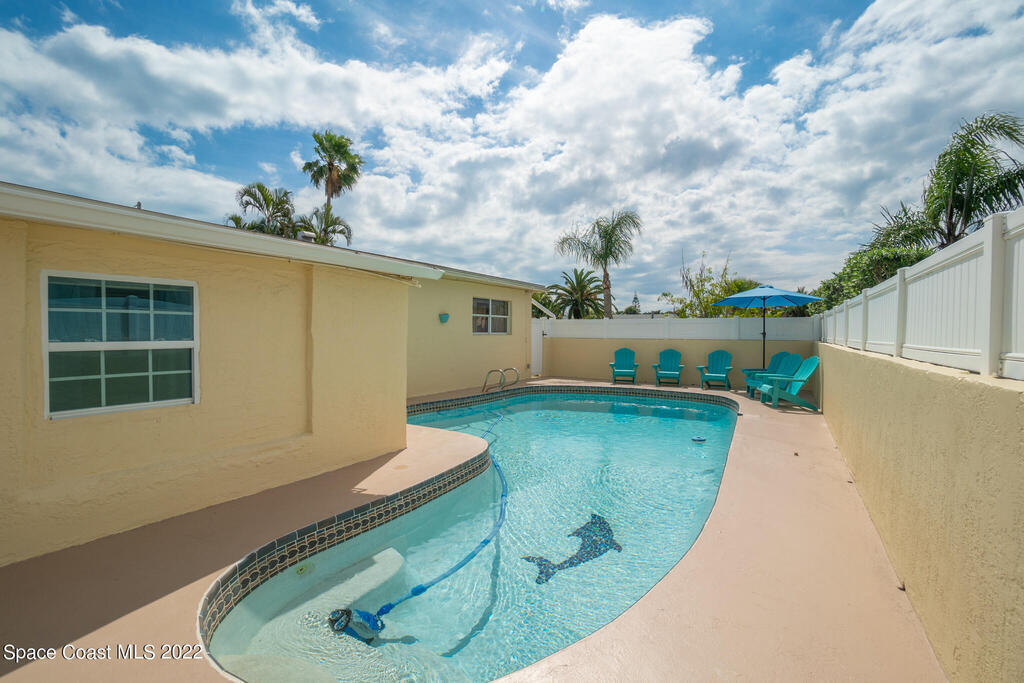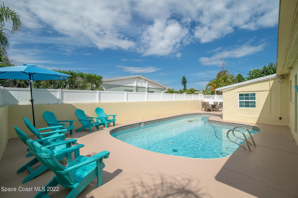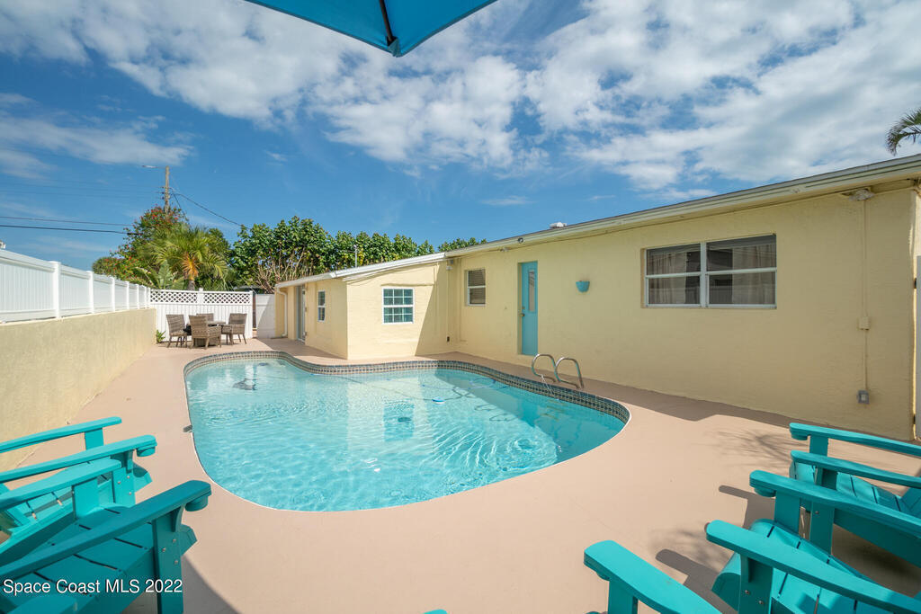 Beach Vibes and Good Times Define this Satellite Beach Property! Located one block to the beach and walking distance to restaurants/nightlife make this the ultimate getaway or a home where you would feel like you are on vacation all the time. Step inside the main house and you will notice the expansive family room that flows right into the media room. The kitchen features coastal white cabinets, butcher block countertops, and a large eat in/dining area. With the extensive bedroom count you would think that space may be limited but I assure you all sleeping quarters are well sized. The master suite is especially large and has an en-suite bath with jetted tub/shower combination. Pool bath has had some recent renovations and the third guest bath is totally brand new.