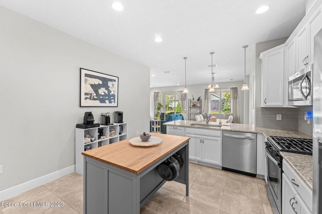 Delightful NEWER executive duplex w/modern appointments. Large tile floors sweep through a spacious great rm w/generous living & dining. Pendant lights hang over a charming b-fast bar kitchen, exhibiting granite counters, white crown-molded cabinetry, SS appliances, a gas oven range & a glass subway tile backsplash. The relaxing primary retreat presents a tray ceiling, double granite sinks & a tiled shower ribboned w/mosaics. A space-saving pocket door leads to a sizable walk-in closet. 2 extra bdrms flank the tiled tub/shower 2nd bath, a comfortable composition for kids/guests. The large laundry rm includes a washer, dryer & storage cabinets. Energy-efficient tankless water htr. Celebrate the outdoors on the airy lanai & at the vacation-style amenity center. Dues include lawn care! Ask about seller credits!