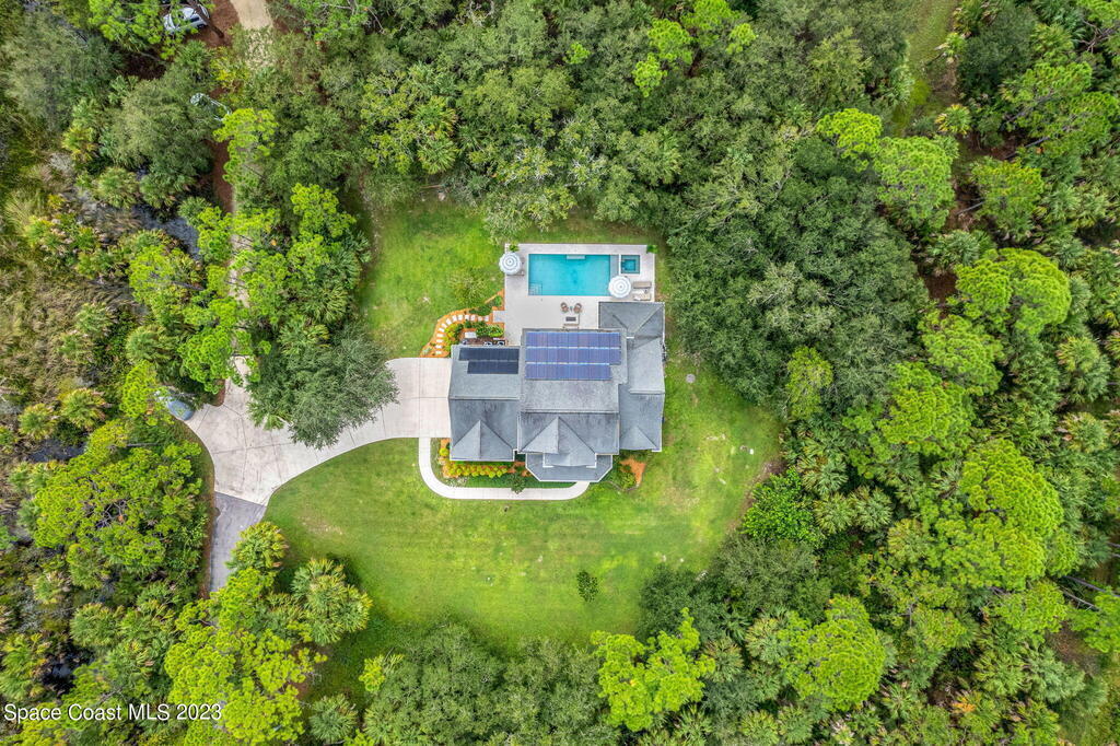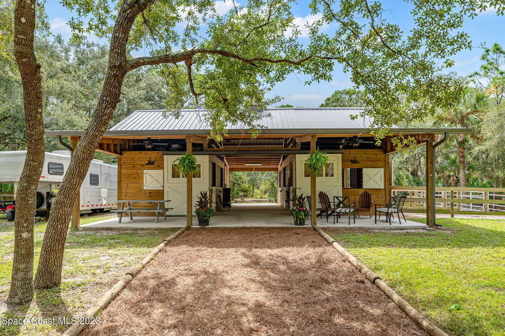 CAPTIVATING COUNTRY ESTATE w/12 acres of wooded trails & forests. Buy the adjacent 7 acres for $350k! NEW 5-stall barn & gorgeous farmhouse-style home w/impact windows/doors & a saltwater pool/spa. Exquisite finishes include solid oak floors, plantation shutters & gracious, open spaces. A floor-to-ceiling fireplace accented w/marble centerpieces the generous living area, flowing into spacious formal dining w/2 sets of glass French doors to the pool & firepit. Stone counters cascade across a chic island kitchen w/SS appliances, an apron sink & a 6-burner gas oven range. A big butler's pantry caters to hungry crowds & a mudroom is ideal for shoes & sports gear. Upstairs owner's suite is a luxurious retreat & a flex rm is great for games. The barn is equipped w/water, electricity & hurricane doors. 3 stall runs & 2 paddocks. Survey attached showing existing driveway easement & proposed driveway easement running along driveway's actual location.