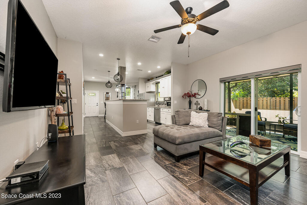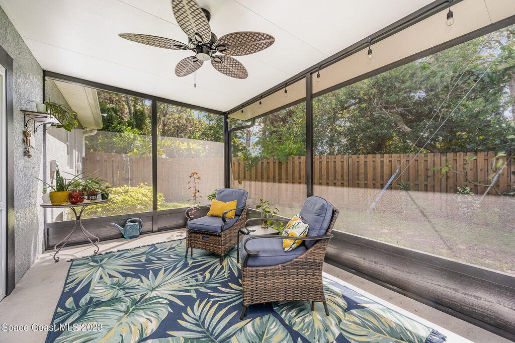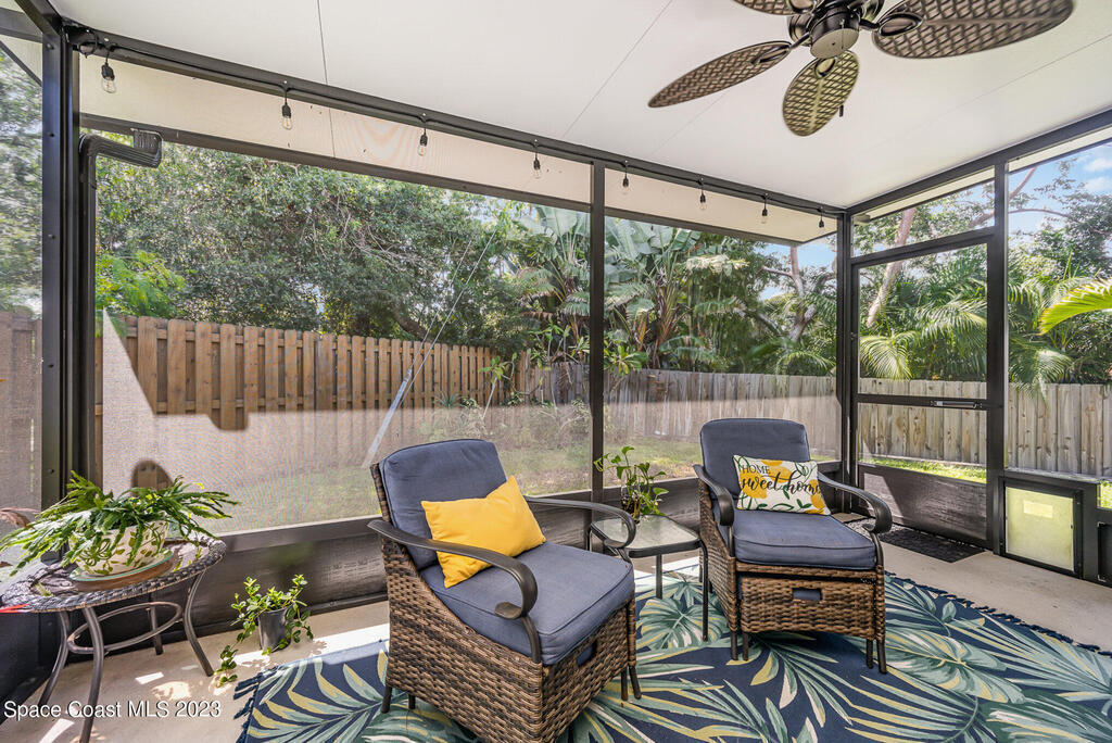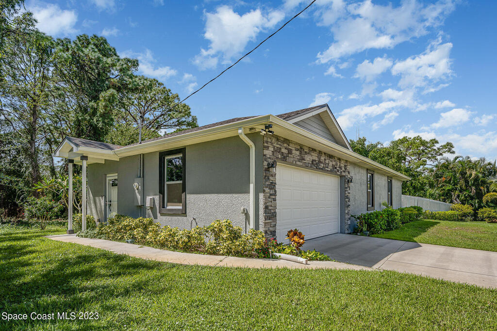 Welcome home to this 4 year old beautiful turnkey 3 bed 2 bath house. Sitting on a lot surrounded by trees and nature. Enjoy your morning coffee or your night cap in the evenings on the newly added screened in porch. There is no HOA, an added irrigation well and sprinkler system, new gutters, a RV power outlet, and a private fenced in backyard. Built in 2019 with 9 ft ceilings, all impact windows and slider, wifi thermostat and garage door opener, in house laundry, beautiful kitchen with granite counter tops and suspended hood range, large master with master bath and walk-in closet. Located between 520 and Pineda Causeway with a quick 15 minute drive to the beaches, and a 45 min drive to Orlando. Great rocket views from NASA. Within a walking distance to the Junior High School.