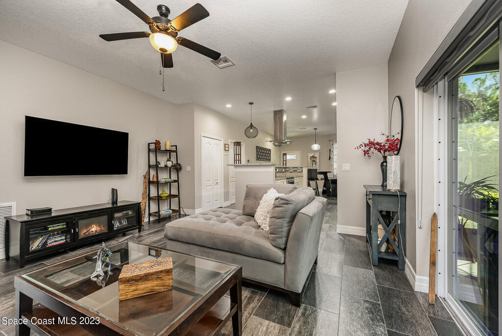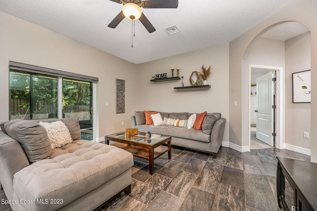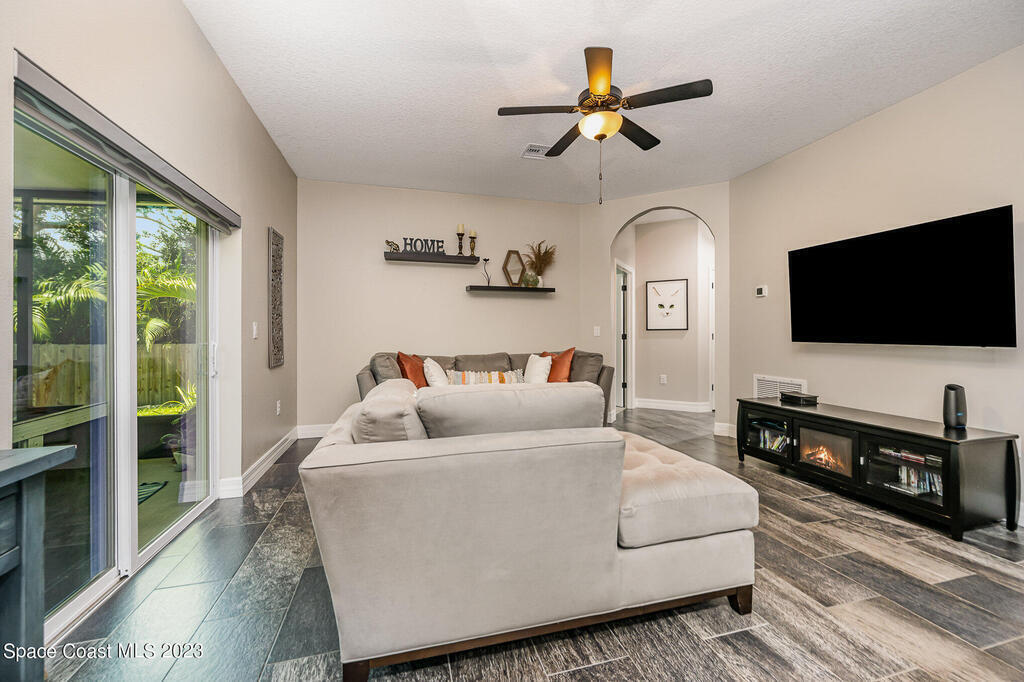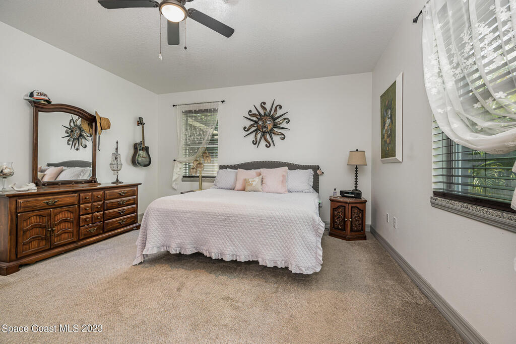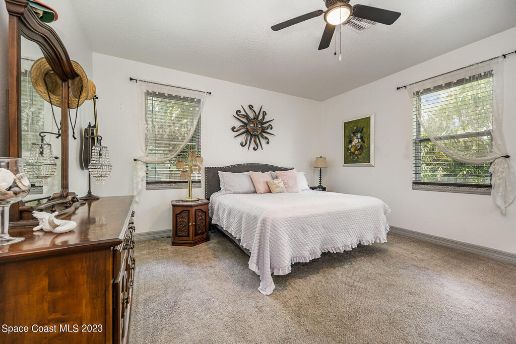 Welcome home to this 4 year old beautiful turnkey 3 bed 2 bath house. Sitting on a lot surrounded by trees and nature. Enjoy your morning coffee or your night cap in the evenings on the newly added screened in porch. There is no HOA, an added irrigation well and sprinkler system, new gutters, a RV power outlet, and a private fenced in backyard. Built in 2019 with 9 ft ceilings, all impact windows and slider, wifi thermostat and garage door opener, in house laundry, beautiful kitchen with granite counter tops and suspended hood range, large master with master bath and walk-in closet. Located between 520 and Pineda Causeway with a quick 15 minute drive to the beaches, and a 45 min drive to Orlando. Great rocket views from NASA. Within a walking distance to the Junior High School.