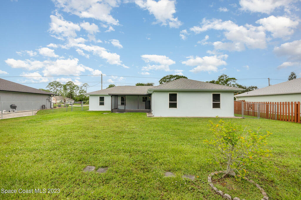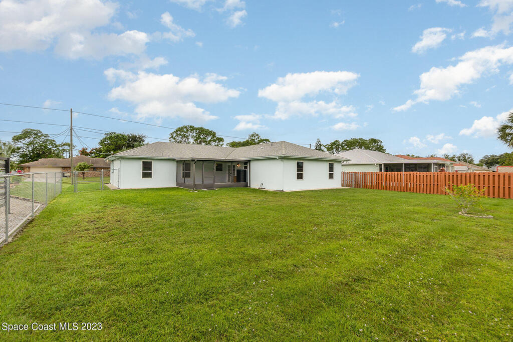 $5,000 CREDIT TOWARDS BUYER'S CLOSING COSTS! 4 bed, 2 bath, 2 car garage. NEW ROOF 2023, IMPACT WINDOWS 2020, HVAC 2022, Water Heater 2023. NO HOA. All the big upgrades are done! Fully fenced yard w/ 3 gates 2019. Kitchen and flooring updates are a blank canvas to meet your style needs, however, home is truly TURN KEY, very clean home! Functional layout for a family with a split plan, formal dining /living rooms + bonus TV room. French doors open to your CLEAN screened back porch. Nestled on a 1/4 acre lot you'll find bonus space w/ a large backyard easement & drainage canal. Perfect for a game of catch or to walk the dogs. WALKING distance to Discovery Elementary. Easy access to I-95 for EASE OF TRAVEL throughout the county. Call Julie for your private showing today! Don't miss out