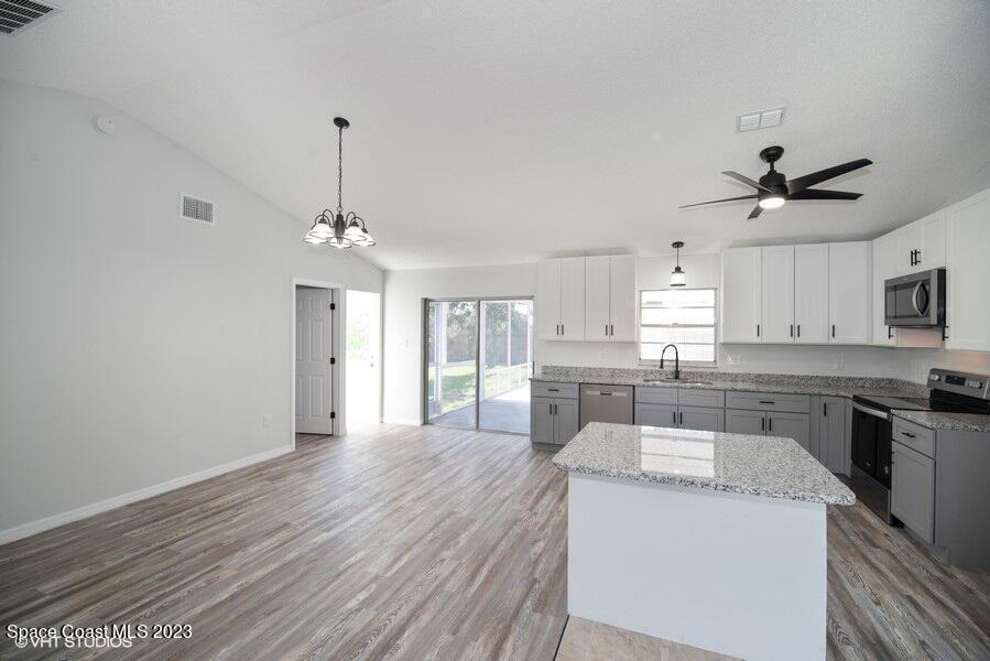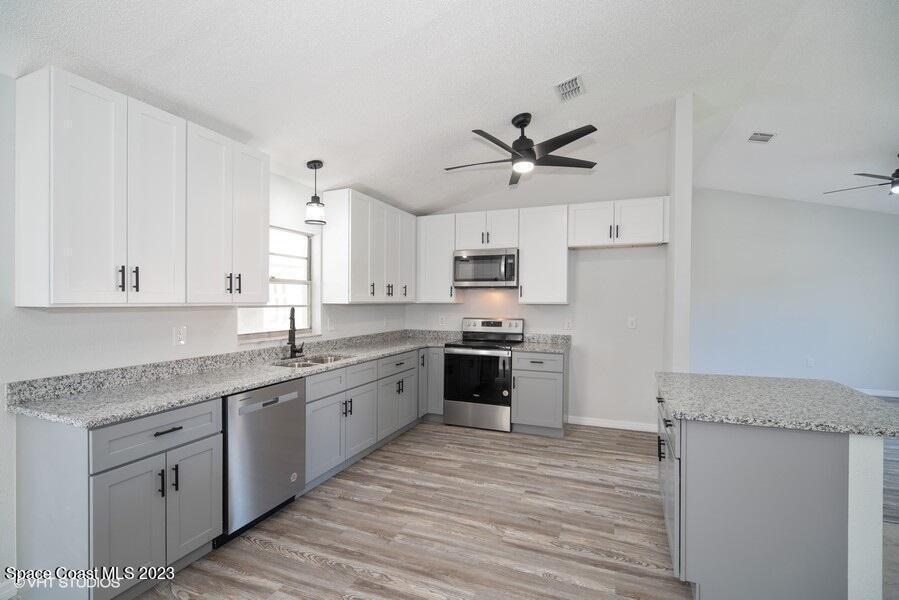 Ceiling Fan(s) , Eat-in Kitchen , Kitchen Island , Open Floorplan , Split Bedrooms , Vaulted Ceiling(s)