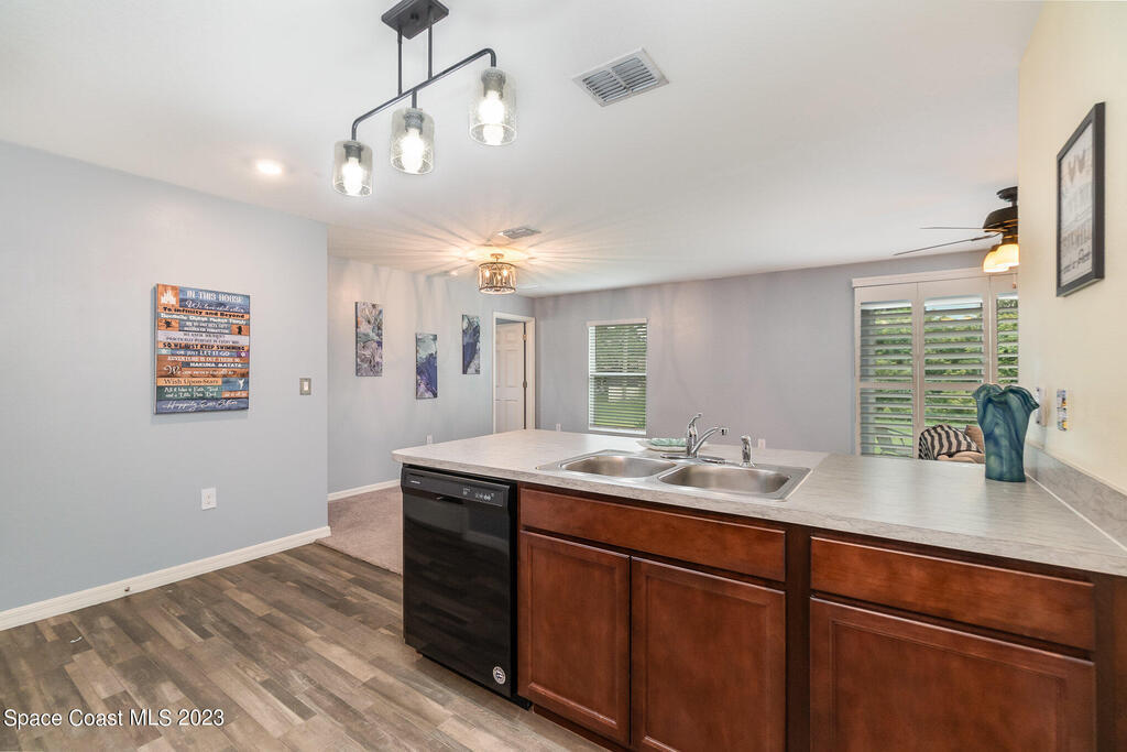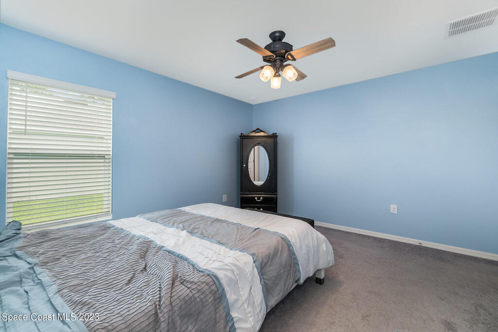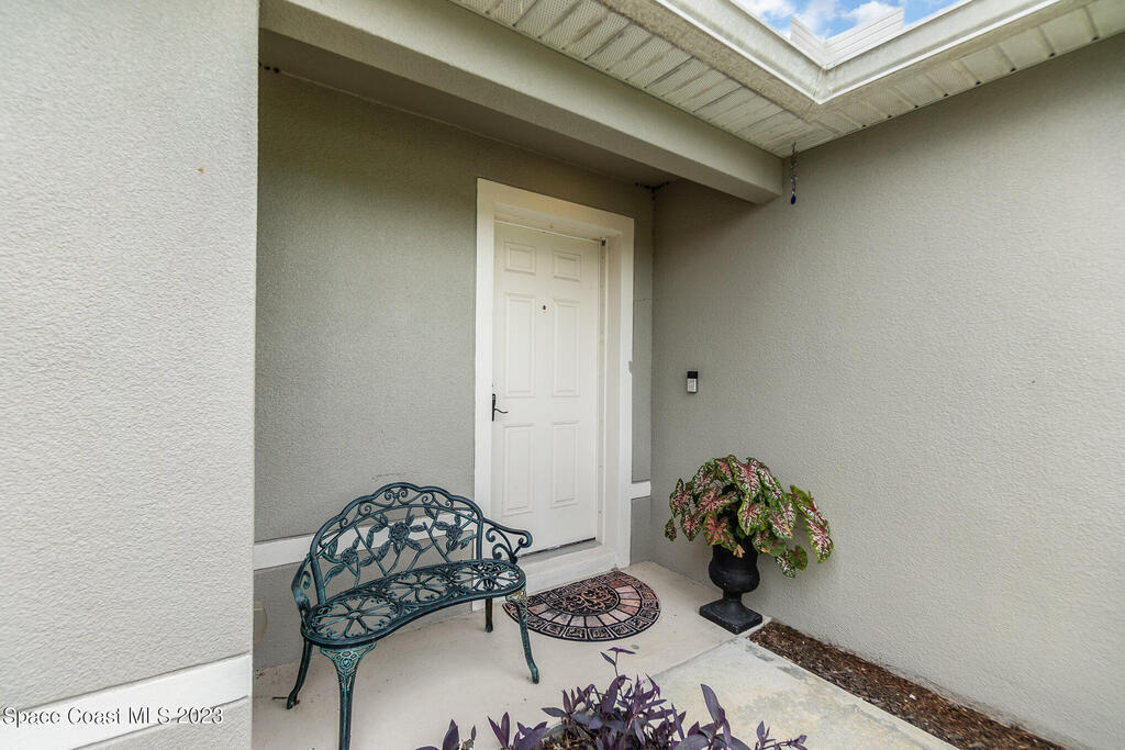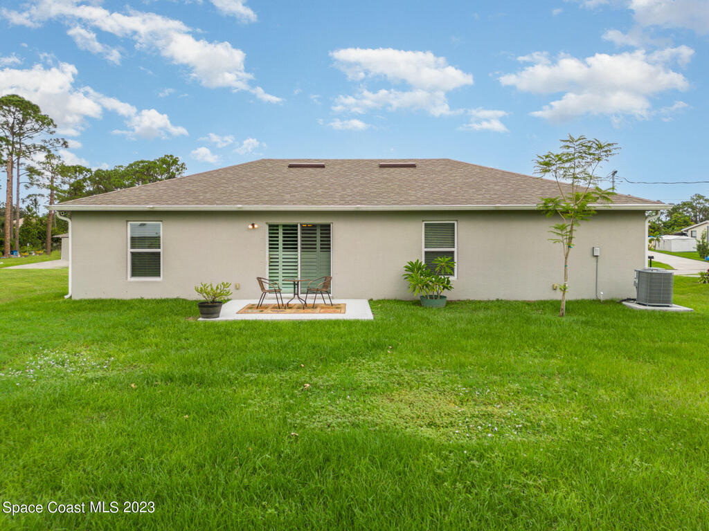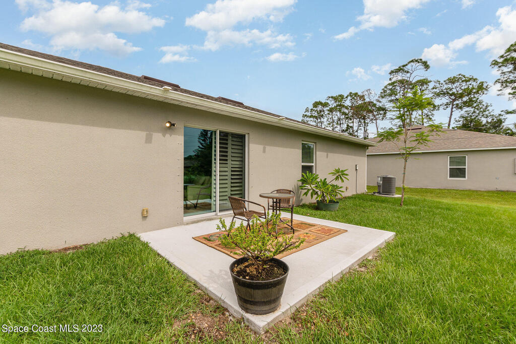 Nestled in the charming city of Palm Bay, this splendid 3-bedroom, 2-full bath home built in 2020 offers a modern oasis for those seeking both comfort and style. As you step onto the manicured front lawn, the lush landscaping welcomes you into a world of tranquility. With custom blinds to stay & an extended patio to relax on those cool evenings. Gutters have been added to the home.