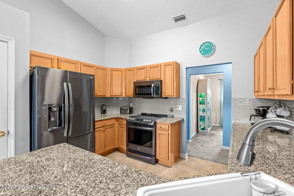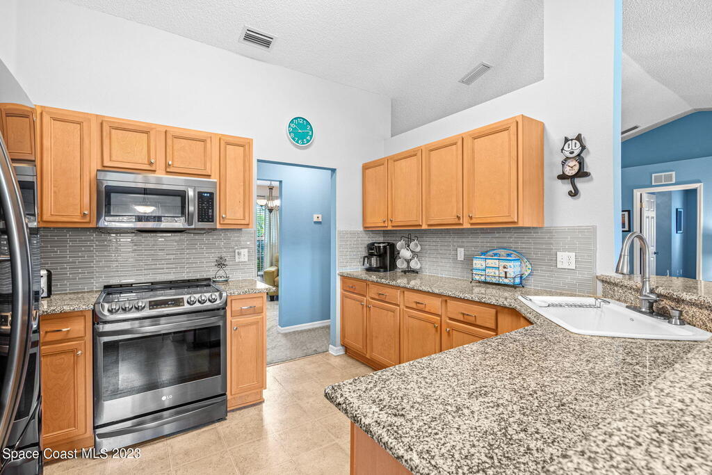 Step into a world of pride in ownership as you explore this exceptional 3BR/2BA home with/ a versatile flex space & a detached 2-car garage (20x28) creating a total of 4 parking spaces. This property is a true gem, nestled on a meticulously maintained 0.54-acre corner lot, with a screened-in pool that beckons you to enjoy the outdoor serenity. Upon entering, you're welcomed by two flexible spaces, perfect for creating your dream home office or cozy reading nook. The spacious kitchen is a chef's dream, boasting granite countertops, a stylish tile backsplash, and sleek black stainless steel appliances. Vaulted ceilings and a wood-burning fireplace in the living area add a touch of charm and warmth to the space. The primary bedroom boasts an en-suite with his & hers closets. Recent upgrades