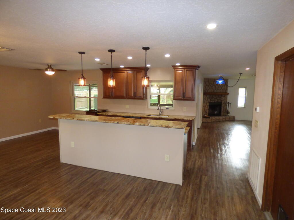 MOVE IN READY SOLAR POWERED HOME! Features include 2022 Trane HVAC, 2021 Roof, NEW Interior and Exterior Paint, New Vinyl Plank Floors Throughout, 2019 Kitchen Remodel with Stainless Steel Appliances, Custom Cabinets, Granite Counters, Butler's Pantry, Wood Burning Fireplace, Screened Porch, 2023 Plumbing, Impact Windows and Hurricane Shutters. Both Bathrooms also Remodeled and a Huge Fenced In Backyard. Sellers removed wall of third bedroom to increase family room, wall can be added back if a third bedroom is needed. Hurry - this home is a must see!!!