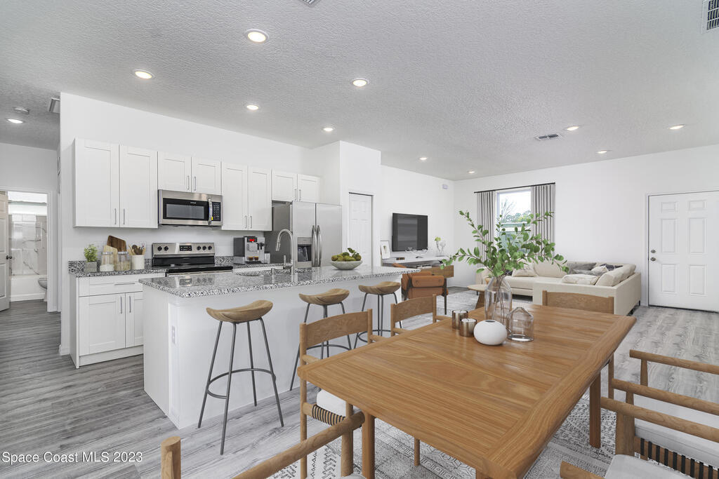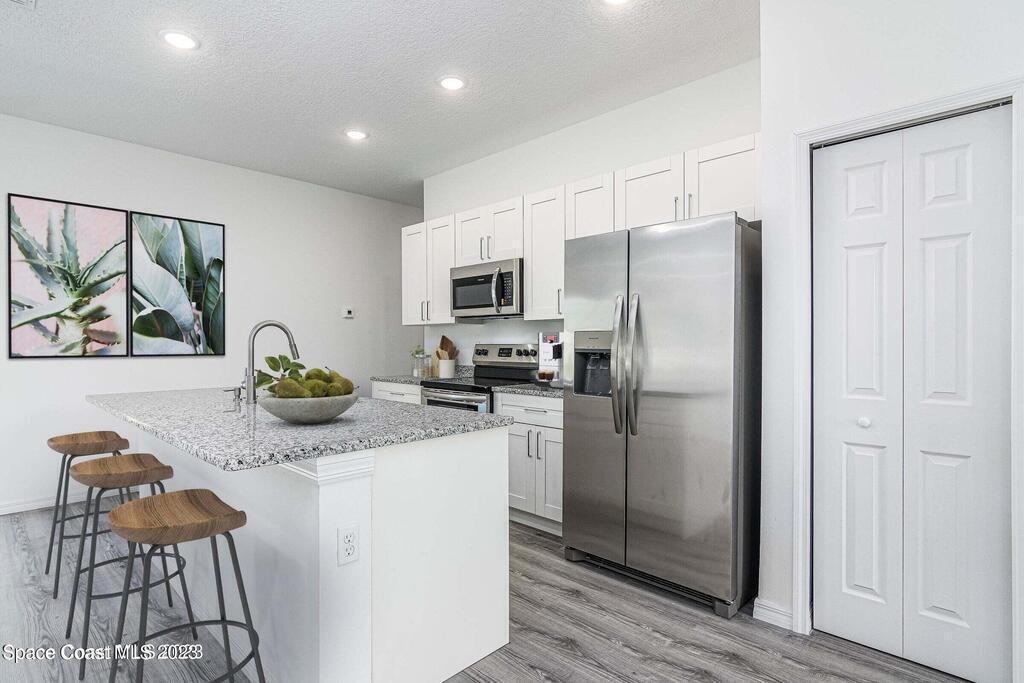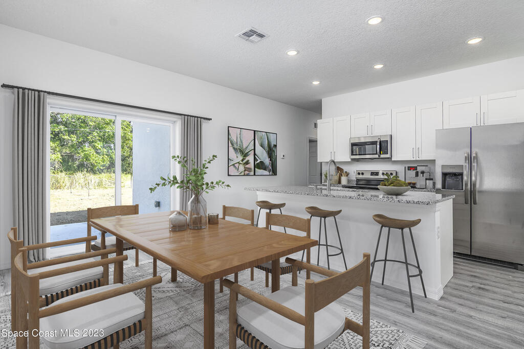 HURRICANE IMPACT windows for your peace of mind! Pets and kids, no problem! Carpetless home, for easy maintenance and luxury vinyl throughout the whole house brings comfort & class, including all bedrooms. Natural light bounces into the open layout, w/a spacious living room gracefully flowing into the roomy casual dining room & kitchen. Beautiful white crisp cabinets accent sleek granite counters, stylish backsplash, a large center island & all stainless steel appliances. The sizable master suite is well-appointed w/granite counters, double sinks, a tiled shower, large soaking tub & a large walk-in closet. Three other bedrooms share 2nd guest bathroom. Outside, enjoy dining al fresco or enjoy the large backyard. Minutes to Malabar rd.