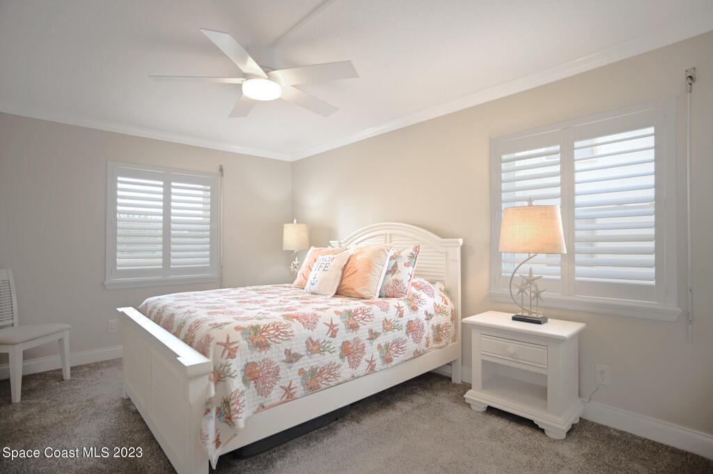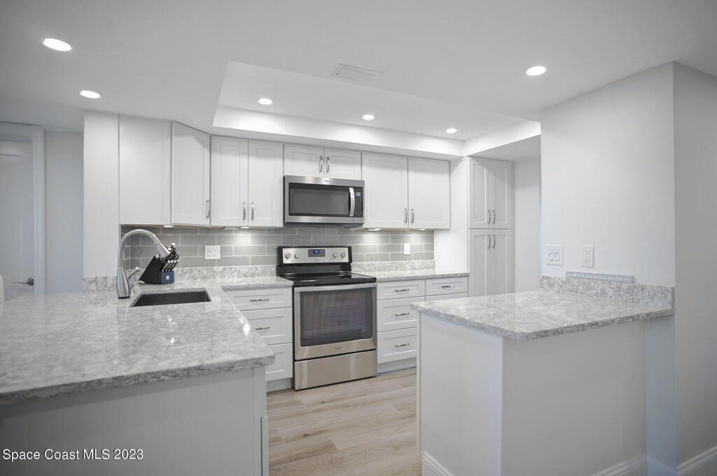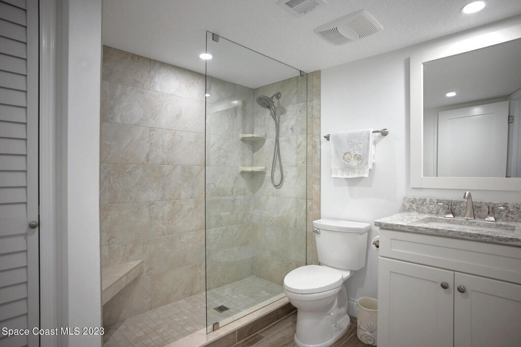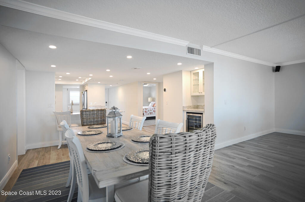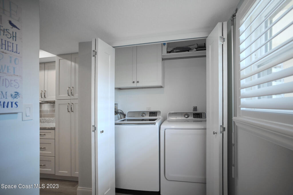 Pristine oceanfront turnkey 3/2 condo completely remodeled in 2019 to perfection boasting an array of sleek finishes and a thoughtful open floor plan. Elegant custom craftsmanship and here are just a few of the features: modern quartz countertops, premium cabinets, custom walk-in closets, crown molding, flooring, SS appliances, expanded master and guest bath, AC and water heater. Other additions were new shutters 2020 and new balcony sliders in 2022. This luxurious unit is truly a trophy property and comes with a deeded shared garage for car and all the beach toys. Complex is 24/7 manned guard gate and sits on 13 acres well off the road for complete serenity. Sit on your wrap around balcony and enjoy watching rocket launches, cruise ships and local events such as air and boat shows.