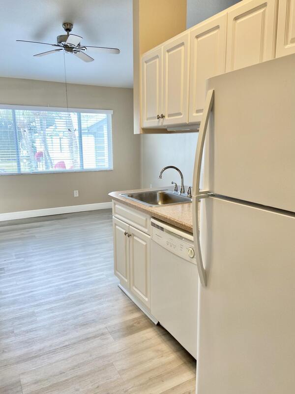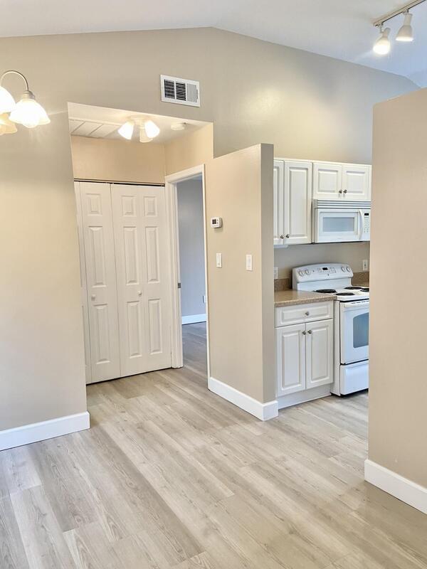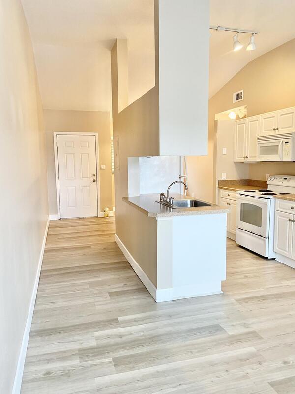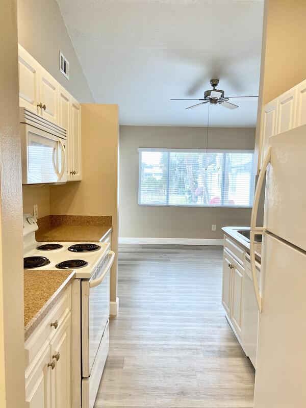 Updated 1 bedroom 1 bath 2nd story condo with vaulted ceiling and screened balcony in desirable gated The Villages of Seaport. Stack washer and dryer in unit, updated bath and kitchen, fresh paint, newer refrigerator, microwave and dishwasher, new flooring, new blinds, new range, no carpet. Water, cable & internet w/DVR & 2 routers, trash p/u, pool, lawn care, club house, exercise room & beach access included in HOA fee. Very nicely maintained & on-site managed complex with private beach access, community pool, tennis court and easy access to Port Canaveral, beaches, Space Center & Space Force Base, 45 minutes to Orlando airport and attractions. Ready for new owners.