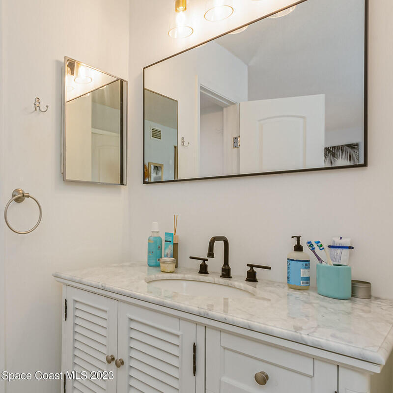 BACK ON MARKET- buyers financing fell thru!!! Nestled in the heart of NE Palm Bay, this beautifully updated and well maintained 2-story, 3-bedroom, 2-bathroom Malibu Villa townhouse awaits you. The split floor plan offers privacy and functionality for families or those who love to entertain. The master bedroom has a brand-new vanity in the bathroom. Enjoy the comfort and peace of mind that comes with a brand-new AC system, ensuring your home stays cool and comfortable year-round. The kitchen holds all-new appliances. This community offers a refreshing community pool, Plus, the affordable HOA fees cover cable TV, WiFi, pest control, pool maintenance & roof replacement, ensuring that your investment remains protected for years to come. Finally, a screened-in area provides a perfect spot to enjoy the Florida weather.