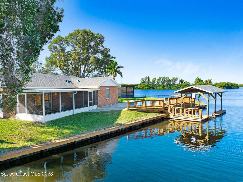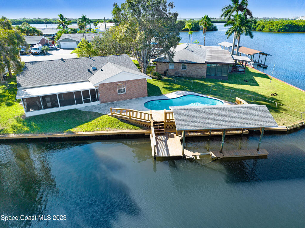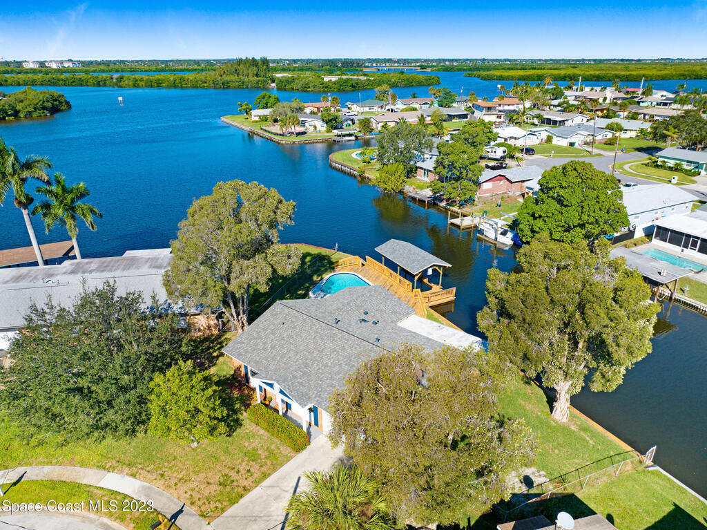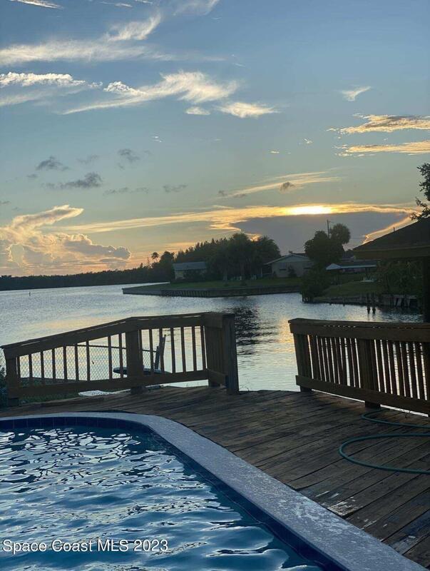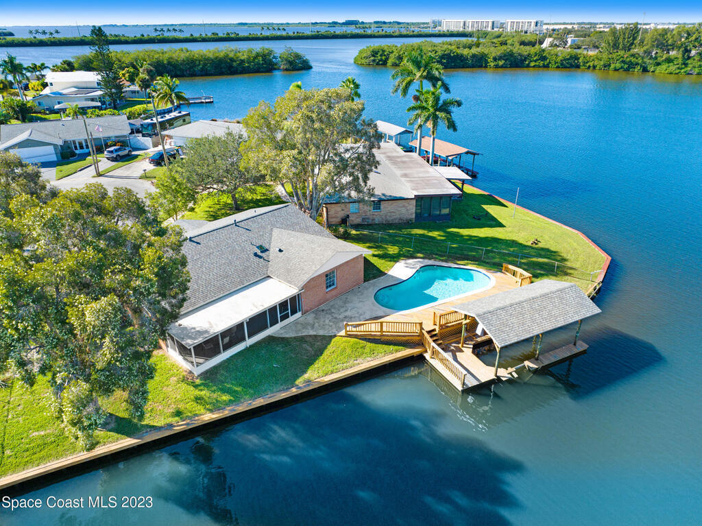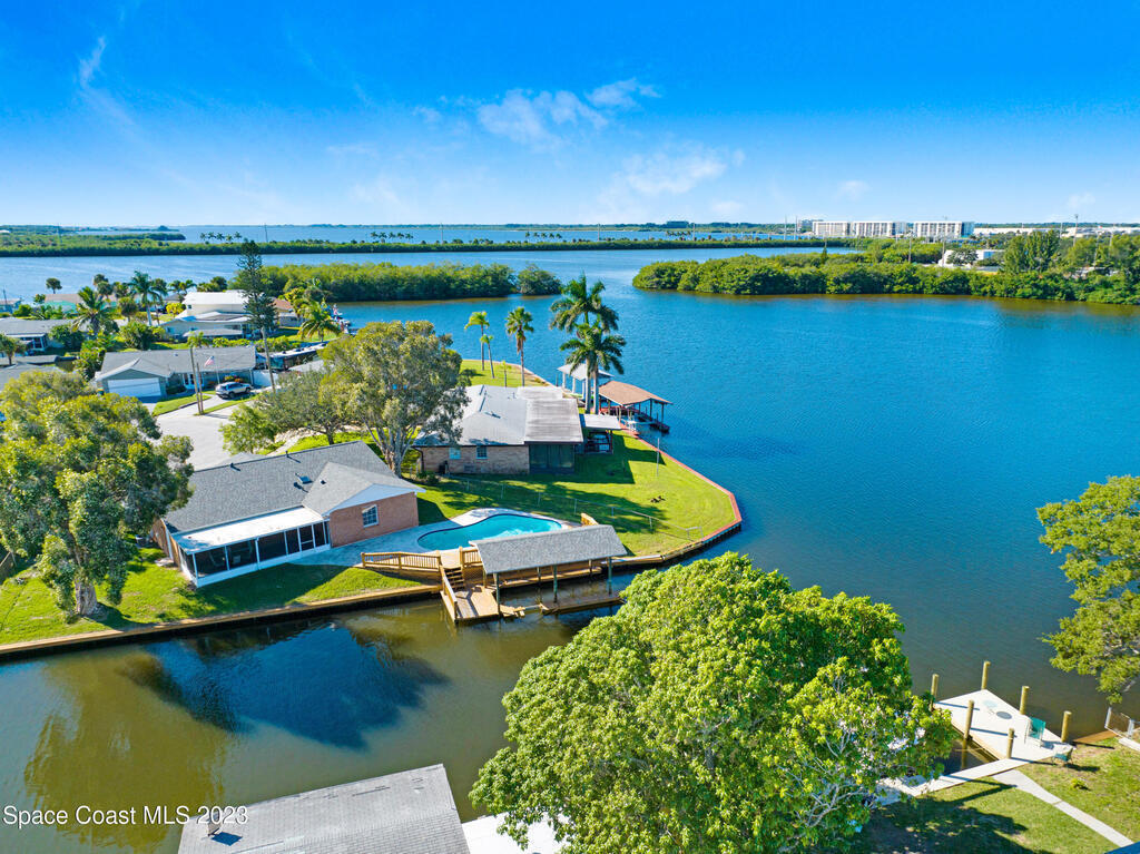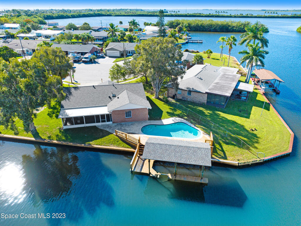 $30,000 PRICE DROP. AND a $10,000 buyer incentive to use off the price or to buy down the rate or go towards closing costs.....so now is your opportunity to own this one of a kind WATERFRONT LOCATION like none other!! This home sits on 120 waterfront footage on the corner of Sykes Creeks & the canal with views of open waters & the conservation lands afar. Enjoy expansive sunsets, dolphins playing, manatees meandering & waterfront wonders entertain you for hours. This hidden gem has a waterfront pool to lounge in or head for the great boat house for your water play toys. Outside AC was replaced 3 years ago. Natural gas for your water heater, range & heat. Newer Water heater. NEW pool Pump & NEW Roof. Fenced in yard makes it a perfect yard. Build over, build up but you can't build that waterfront location. All of this with the privacy of being located in a cul-de-sac. Seller would like to finalize this estate, so bring us an offer! This home is priced accordingly. See Agent Remarks