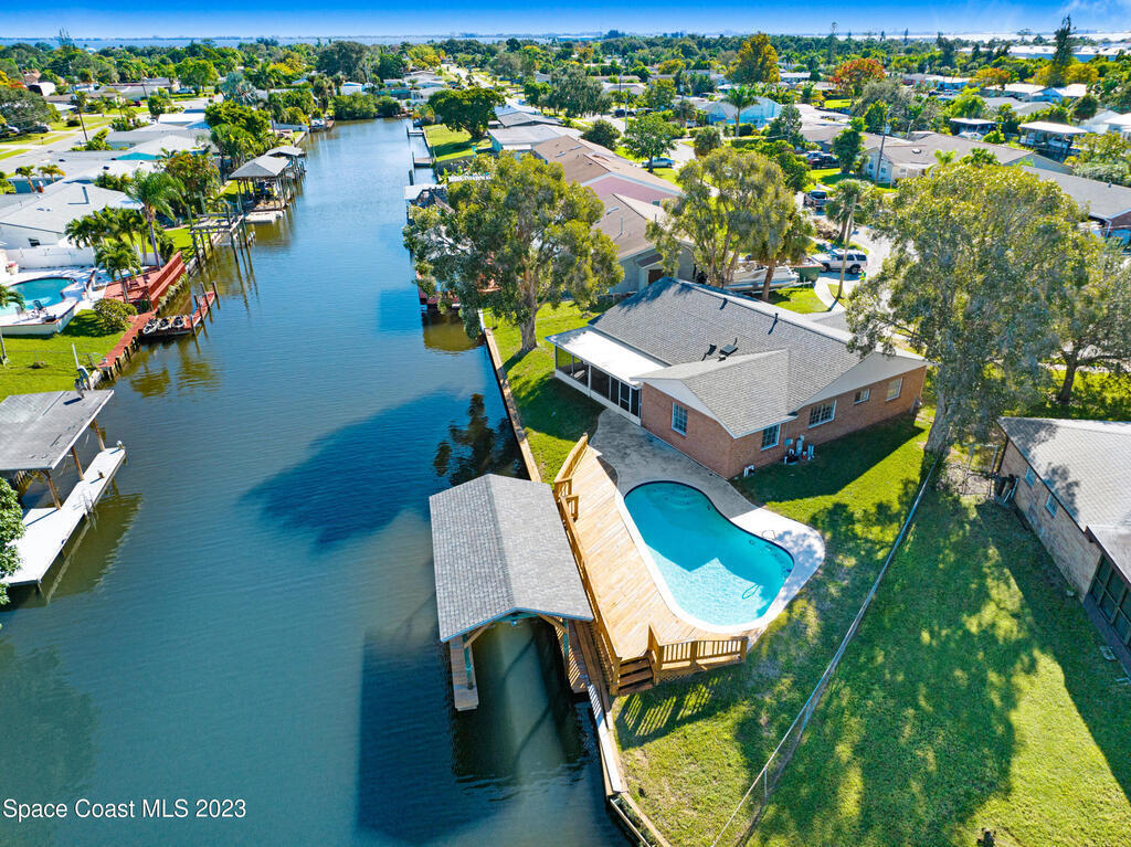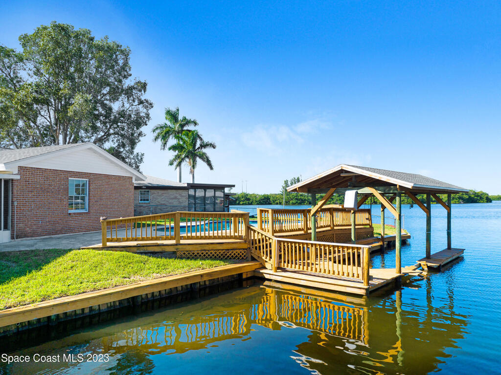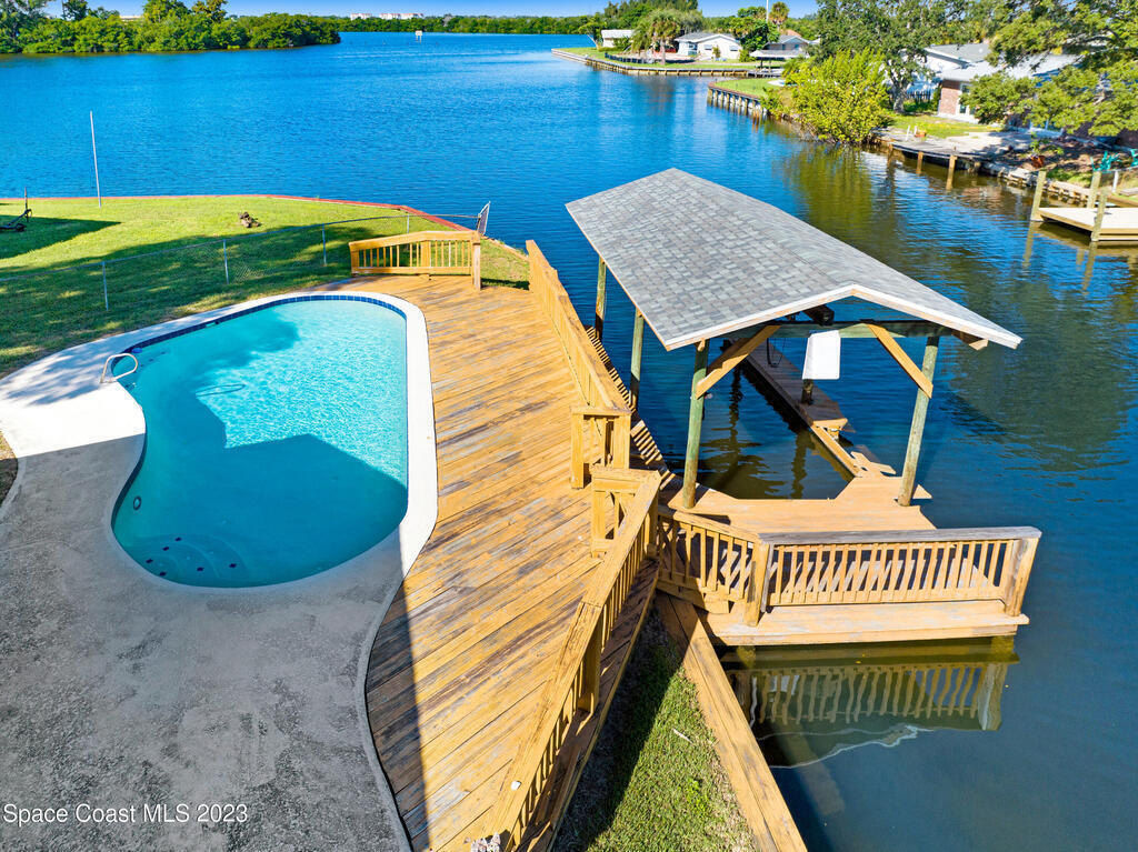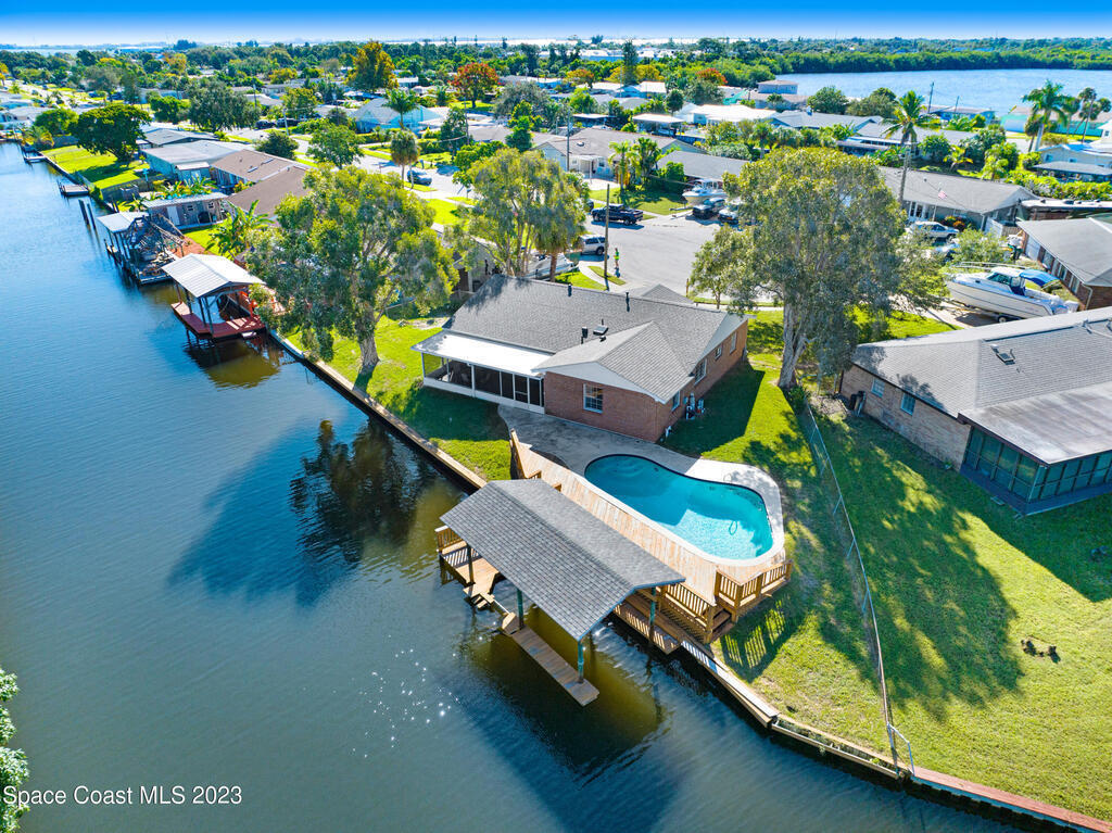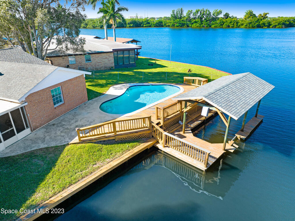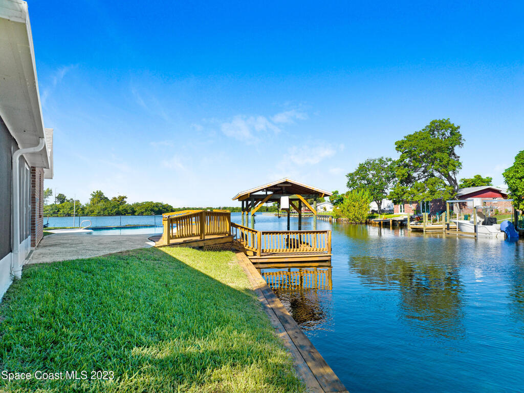 $30,000 PRICE DROP. AND a $10,000 buyer incentive to use off the price or to buy down the rate or go towards closing costs.....so now is your opportunity to own this one of a kind WATERFRONT LOCATION like none other!! This home sits on 120 waterfront footage on the corner of Sykes Creeks & the canal with views of open waters & the conservation lands afar. Enjoy expansive sunsets, dolphins playing, manatees meandering & waterfront wonders entertain you for hours. This hidden gem has a waterfront pool to lounge in or head for the great boat house for your water play toys. Outside AC was replaced 3 years ago. Natural gas for your water heater, range & heat. Newer Water heater. NEW pool Pump & NEW Roof. Fenced in yard makes it a perfect yard. Build over, build up but you can't build that waterfront location. All of this with the privacy of being located in a cul-de-sac. Seller would like to finalize this estate, so bring us an offer! This home is priced accordingly. See Agent Remarks