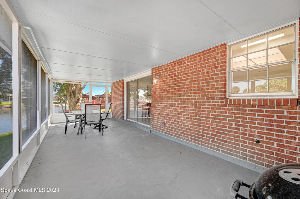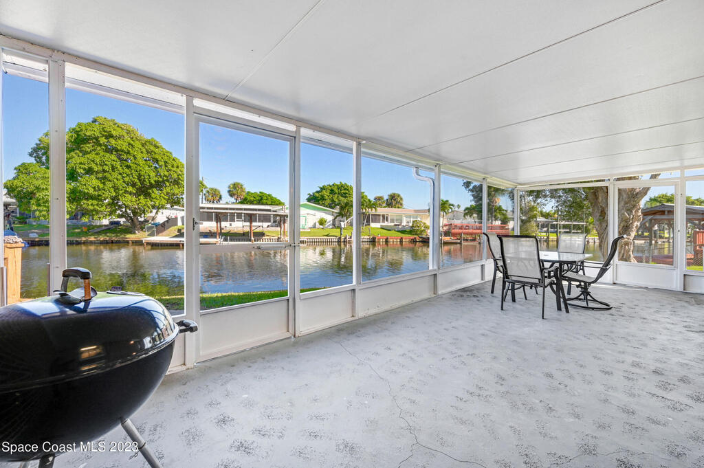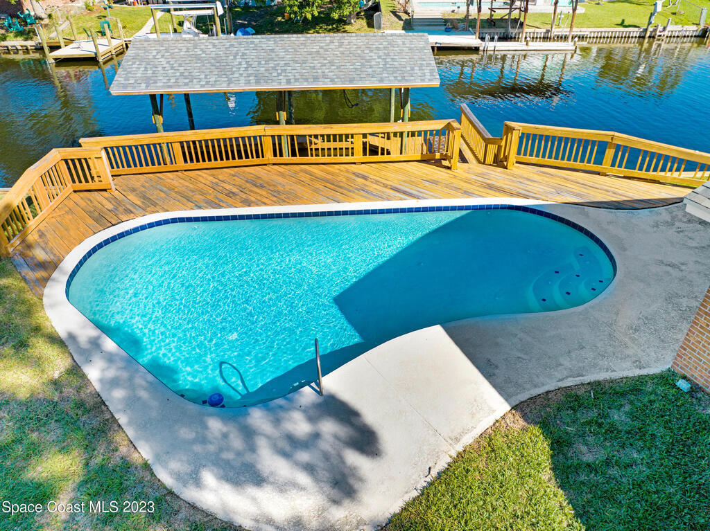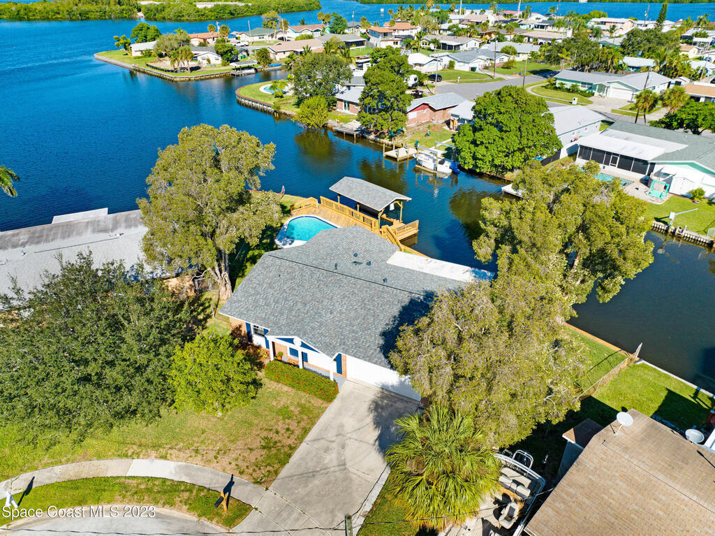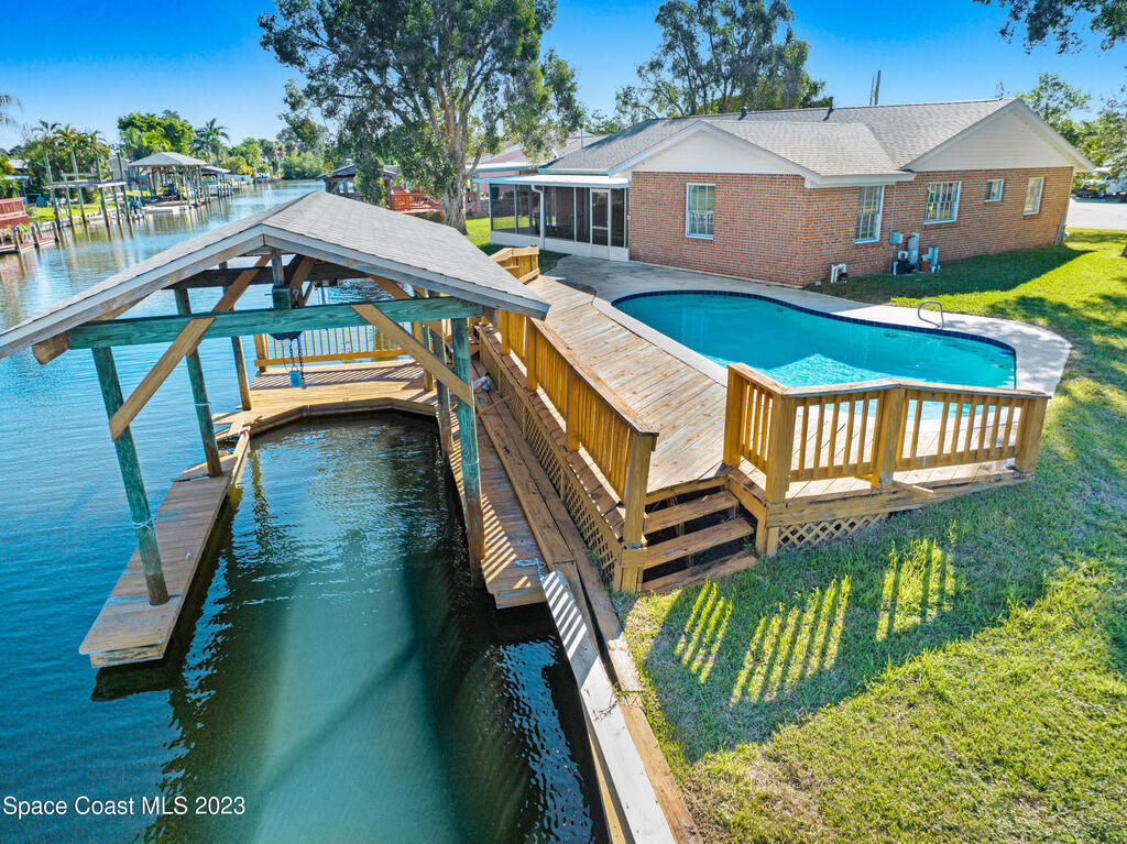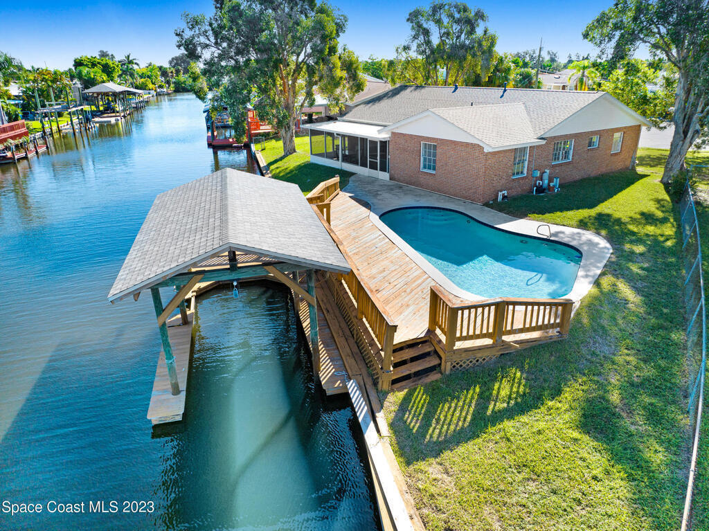 $30,000 PRICE DROP. AND a $10,000 buyer incentive to use off the price or to buy down the rate or go towards closing costs.....so now is your opportunity to own this one of a kind WATERFRONT LOCATION like none other!! This home sits on 120 waterfront footage on the corner of Sykes Creeks & the canal with views of open waters & the conservation lands afar. Enjoy expansive sunsets, dolphins playing, manatees meandering & waterfront wonders entertain you for hours. This hidden gem has a waterfront pool to lounge in or head for the great boat house for your water play toys. Outside AC was replaced 3 years ago. Natural gas for your water heater, range & heat. Newer Water heater. NEW pool Pump & NEW Roof. Fenced in yard makes it a perfect yard. Build over, build up but you can't build that waterfront location. All of this with the privacy of being located in a cul-de-sac. Seller would like to finalize this estate, so bring us an offer! This home is priced accordingly. See Agent Remarks