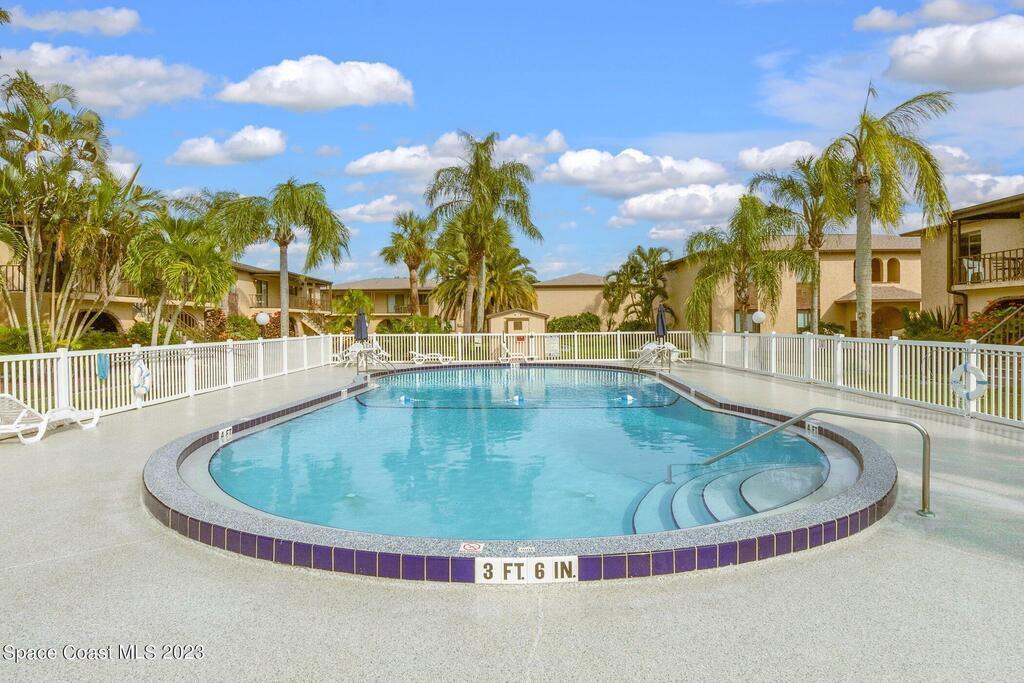 PRICE REDUCTION. MOTIVATED SELLER. Welcome to San Paulo Village. A great complex in the heart of West Melbourne. This ground floor unit is very spacious and offers 2 bedrooms 2 baths, tile throughout, with a beautiful view of the courtyard and of one of the community pools. The outside patio area is non-slip tile with a storage unit for extra storage space. In addition to the 2 community pools, there are 2 laundry facilities on site plus tennis/pickleball courts. There is also a recreational center by the south pool. The assigned parking space is in front of the unit for easy access with plenty of guest parking. New roof installed May, 2023. Ideal location with shopping and restaurants close by, just 15 minutes from the beach.