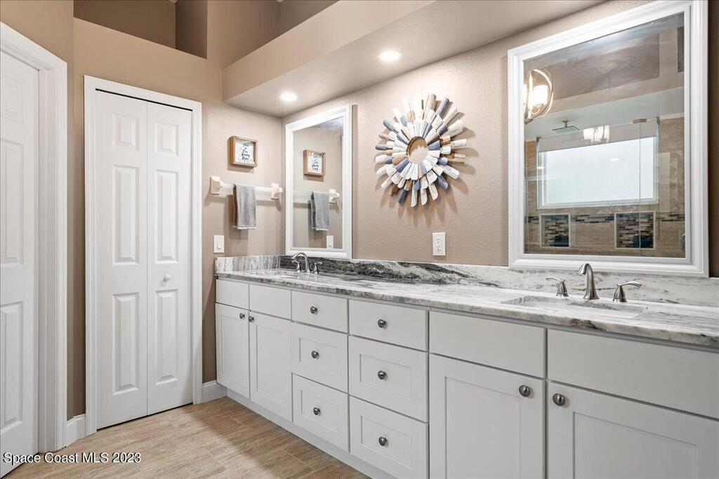 Brand New Roof! 2019 AC, Water Heater 2023, upgraded gutters in 2020. This home has been immaculately maintained and offers the highly sought after split floor plan. Boasting 4 bedrooms and 3 full bathrooms. The entryway welcomes you into a large open floorplan dressed in natural light beaming across 10ft ceilings. The kitchen and all bathrooms are tastefully updated with high end finishes. Plenty of storage with custom closets, custom garage built-ins, and every bathroom has a linen closet. Added attic insulation and impact windows present a very energy efficient home- current Sellers Electric bill is always under $100! The backyard is a Florida oasis with the oversized screened patio- renovated in 2022. Outdoor kitchenette creates the perfect entertaining space. Perfect location near
