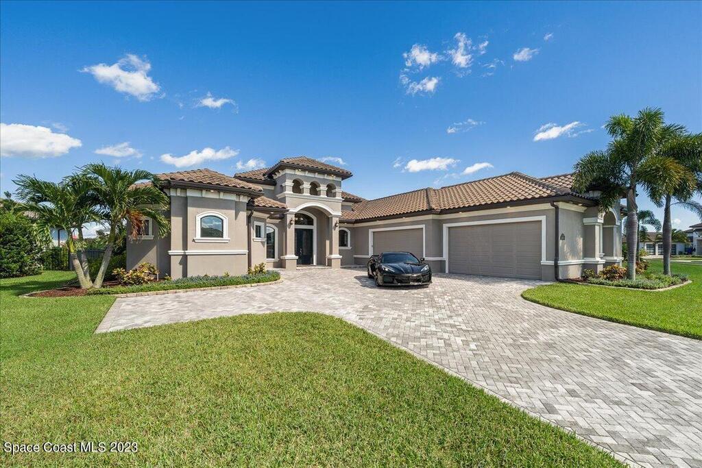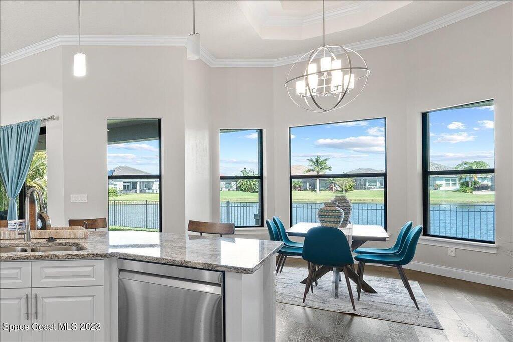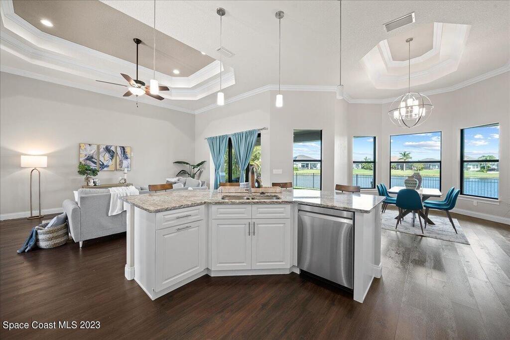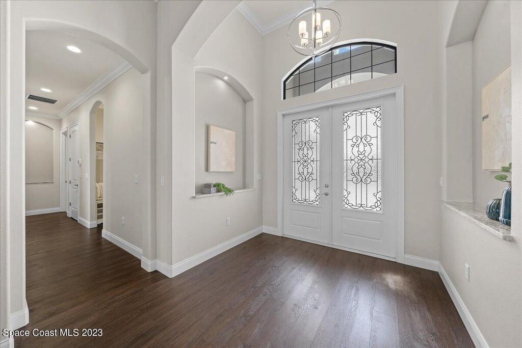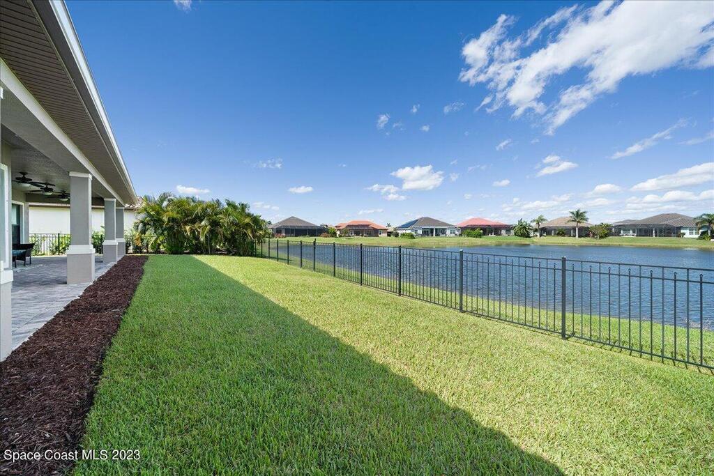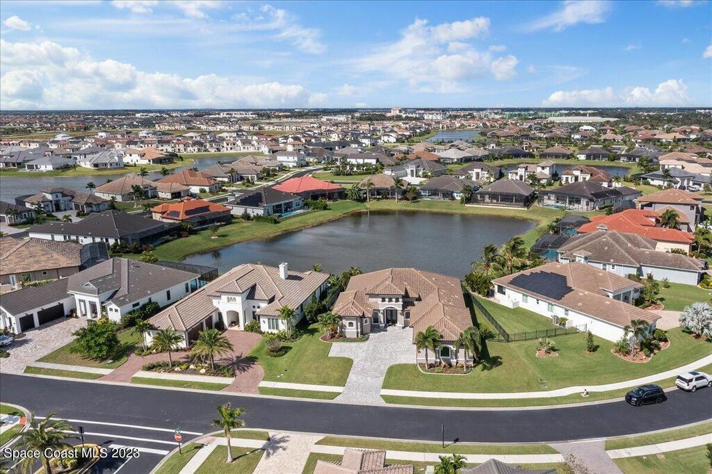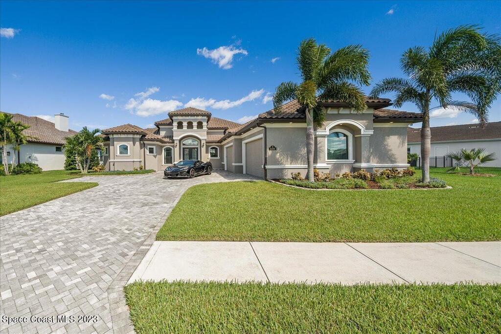 Welcome home to the luxurious gated community of Valencia located in the top 10 master planned community of Viera. This beautifully crafted custom built executive home sits on a .3 acre lake front lot offering 4 bedrooms + office, 3 baths & a side entry 4 car oversized garage built for a car enthusiast. Upon arrival the grand entrance to this home makes a huge statement coupled with the double door glass entry. As you enter you will be captivated by the soaring ceilings with double trays in the great room & dining room along with the crown molding details. The gourmet kitchen is a chefs paradise with a 5 burner gas cooktop, wall oven and huge kitchen island with ample room to prep & entertain. The kitchen showcases white painted custom cabinetry, beautiful granite countertops and a