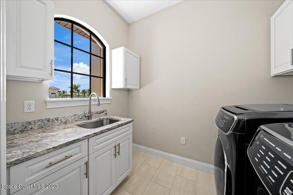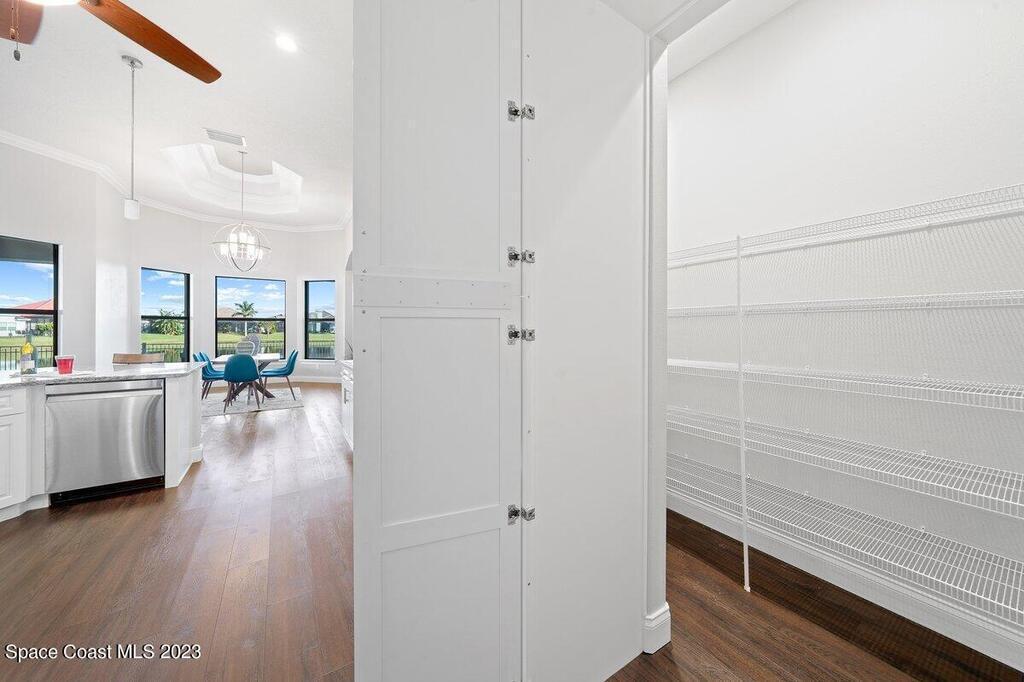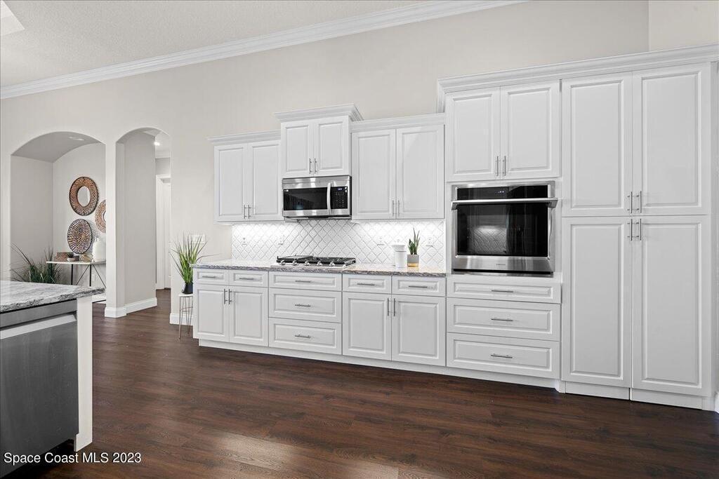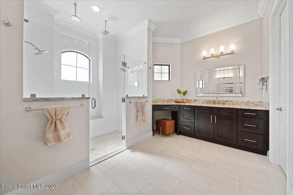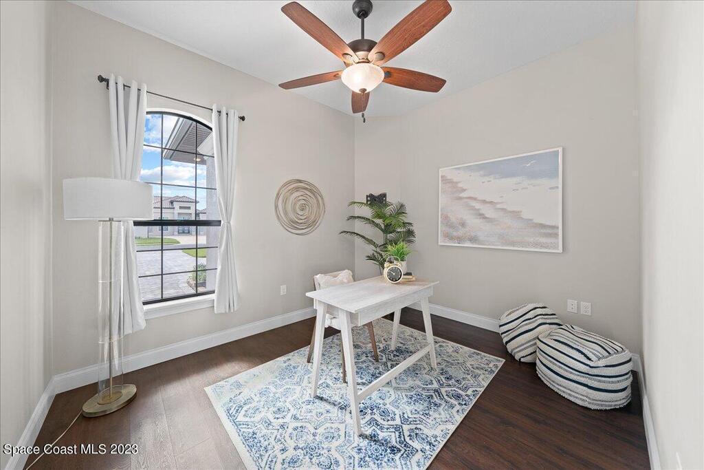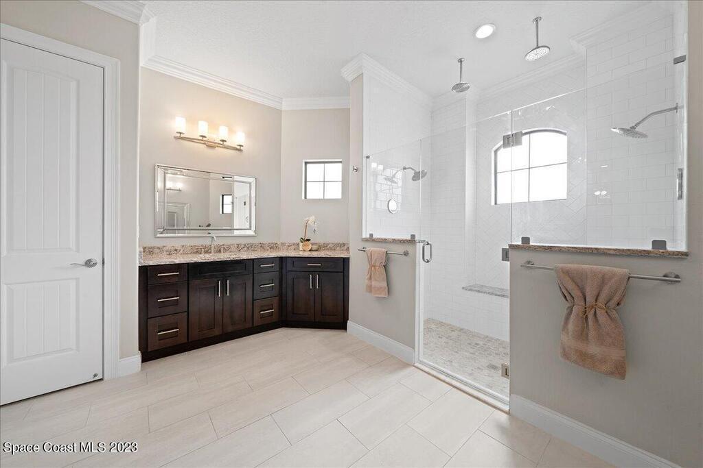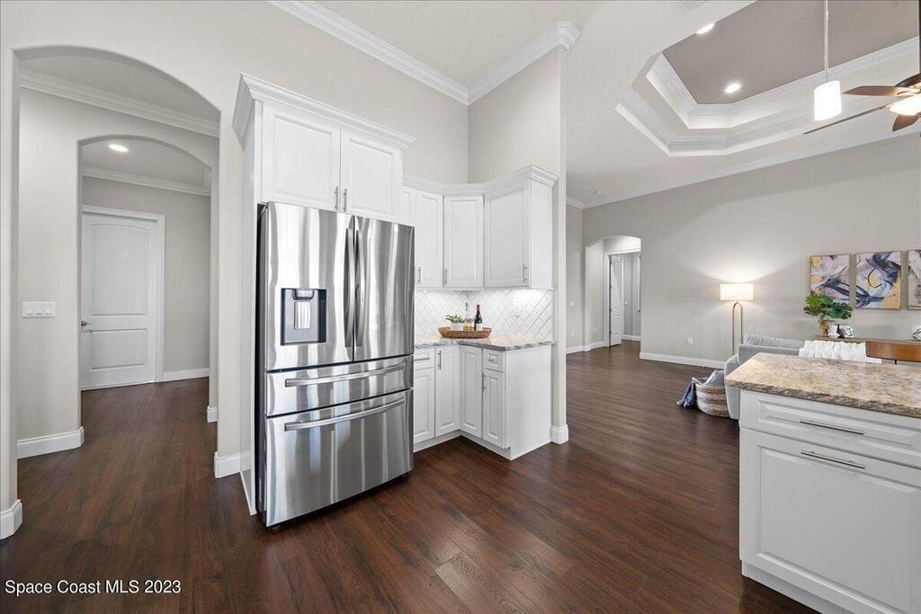 Welcome home to the luxurious gated community of Valencia located in the top 10 master planned community of Viera. This beautifully crafted custom built executive home sits on a .3 acre lake front lot offering 4 bedrooms + office, 3 baths & a side entry 4 car oversized garage built for a car enthusiast. Upon arrival the grand entrance to this home makes a huge statement coupled with the double door glass entry. As you enter you will be captivated by the soaring ceilings with double trays in the great room & dining room along with the crown molding details. The gourmet kitchen is a chefs paradise with a 5 burner gas cooktop, wall oven and huge kitchen island with ample room to prep & entertain. The kitchen showcases white painted custom cabinetry, beautiful granite countertops and a