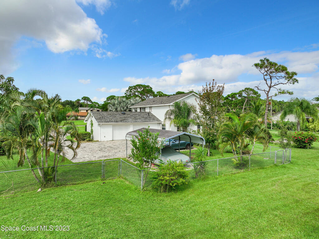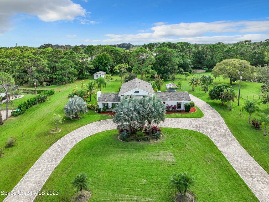 Nestled in the prestigious Lake Washington Estates, this stately equestrian zoned home offers 4-bedrooms, 2.5-bathrooms residence exudes elegance on 1.48 acres of prime property. Roof 2021, Exterior painted 2021, AC 2022, Electrical Panel rewire 2022, Hurricane shutters, home needs cosmetic updates. The home welcomes you with a circular front driveway adorned with classic brick pavers, setting the stage for the grandeur within that you could add your personal touches. The partially fenced estate ensures both privacy and security, while the rear features an oversized 2-car garage, with an additional covered carport. Entering the home, you get a full view of the extended living room, with plenty of natural light, formal dining room and kitchen are separated by a breakfast bar, both with bay windows on the rear of the home for a beautiful view. Kitchen has tons of storage cabinets and granite counter space. First floor bedroom has a walk-in closet and fully remodeled en-suite bathroom.