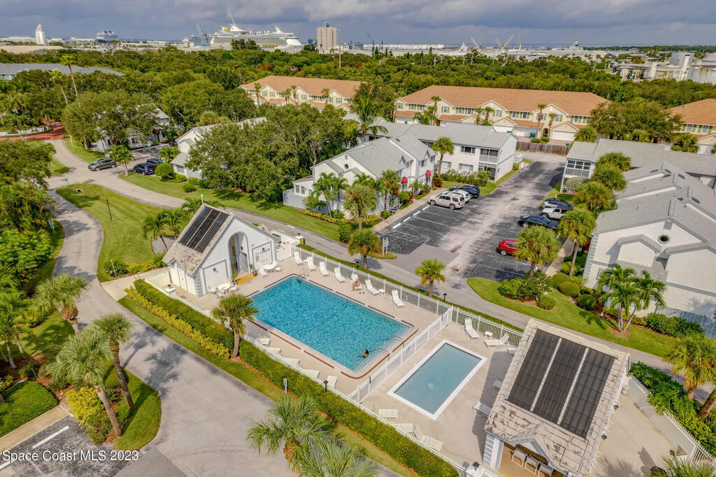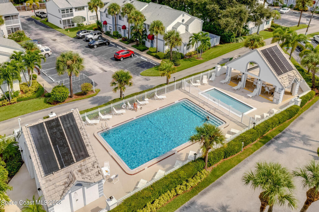 Live like you are on VACATION everyday! Newly painted interior including ceilings & baseboards, tile & granite throughout. Kitchen has lots of cabinets (drawers too), Breakfast Bar & passthrough to Dining Rm. This unit is perfect for Roommates as it has 2 Bedrooms upstairs with private baths. Half Bath down. GATED RESORT STYLE LIVING - 3 Pools, Tennis, Basketball, Racquetball, Gym, Hot Tub, Playground, Private Beach Access, Vehicle Wash Area, Water, Sewer, Trash, Cable, Internet, Pest Control, Roof Replacement & Lawn/Landscaping included in HOA!! Min. 1 month Lease required so this makes for a great Investment Property! A short drive to Cocoa Beach & Cape Canaveral. Port Canaveral is only 10 minutes away-Park & literally board a Cruise Ship & sail the high seas!