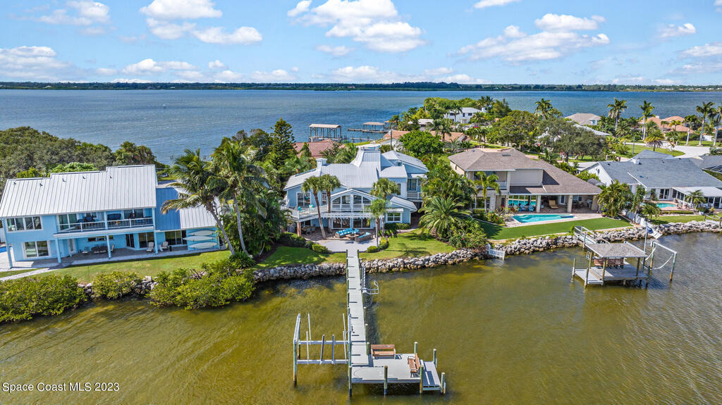 WOW, come see this amazing, MOVE IN READY, boaters' paradise w/views from nearly every room. Heck, with 5 beds/5 baths, 2 being primary suites w/their own bathrooms & 1 being a self-contained ''GUEST'' suite on the first floor w/separate parking & patio, this home has something for everyone. This gorgeous homes' kitchen is well-equipped w/high-quality cabinets, stainless steel appliances, double refrigerators, & an island featuring a gas stove. The open layout extends into the spacious L.R. w/high vaulted ceilings. Outdoor is perfect for hosting gatherings, offering an outdoor bar, a covered paver patio, beautiful landscaping, a boat dock w/seating & a 10,000 lb boat lift, constructed w/TREK composite materials. There's also a one of a kind crow's nest providing 360-degree views.
