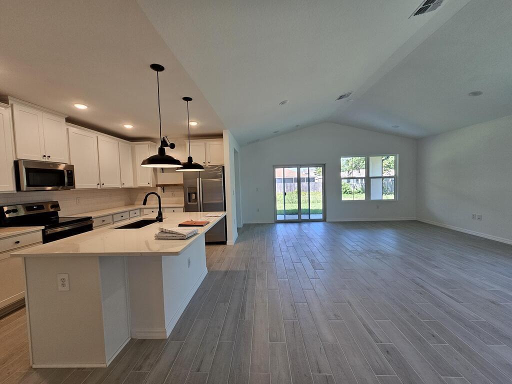MOVE IN READY!!! BRAND NEW! PERFECT FOR RENTAL OR MULTIGENERATIONAL LIVING! We are putting the finishing touches on this Passionflower model featuring our Extra Suite Plus which offers a private living area, kitchenette, bedroom, bathroom and its own private entrance!This spacious open floor plan is upgraded to include vaulted ceilings,impact windows, designer curated Farmhouse Looks, 42'' cabinets, tile throughout (no carpet!), quartz island in the kitchen and baths, tiled shower walls and whole house irrigation. Refrigerator, washer and dryer included. Enjoy low-maintenance new construction without the HOA! Builder warranties included and builder incentives are available. MOVE IN READY