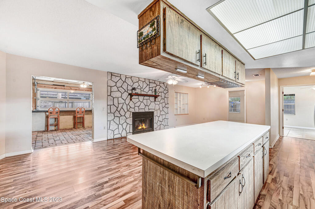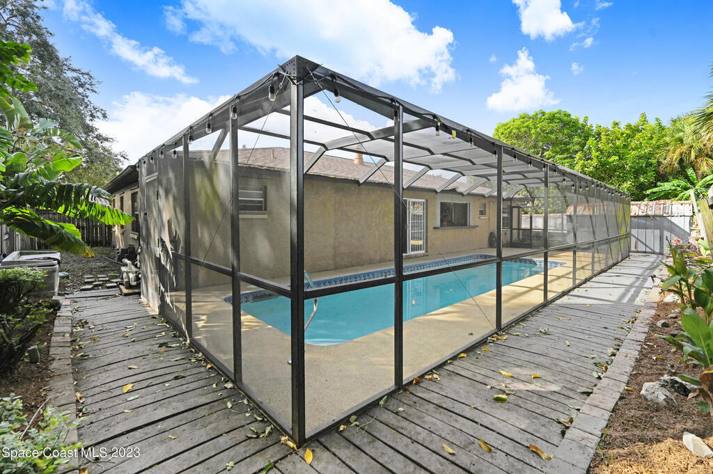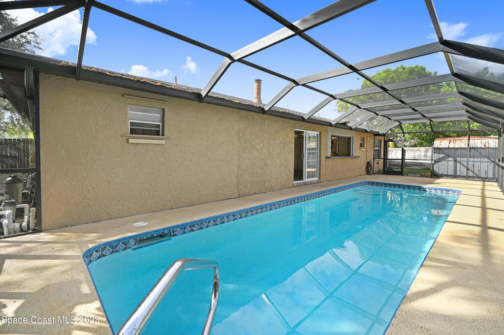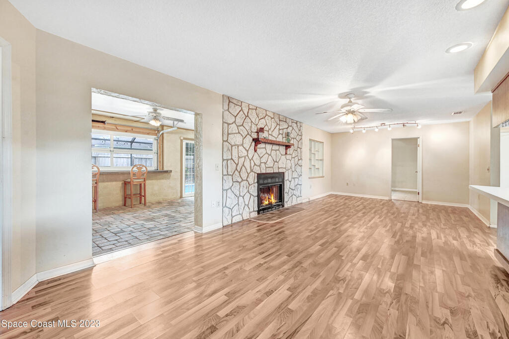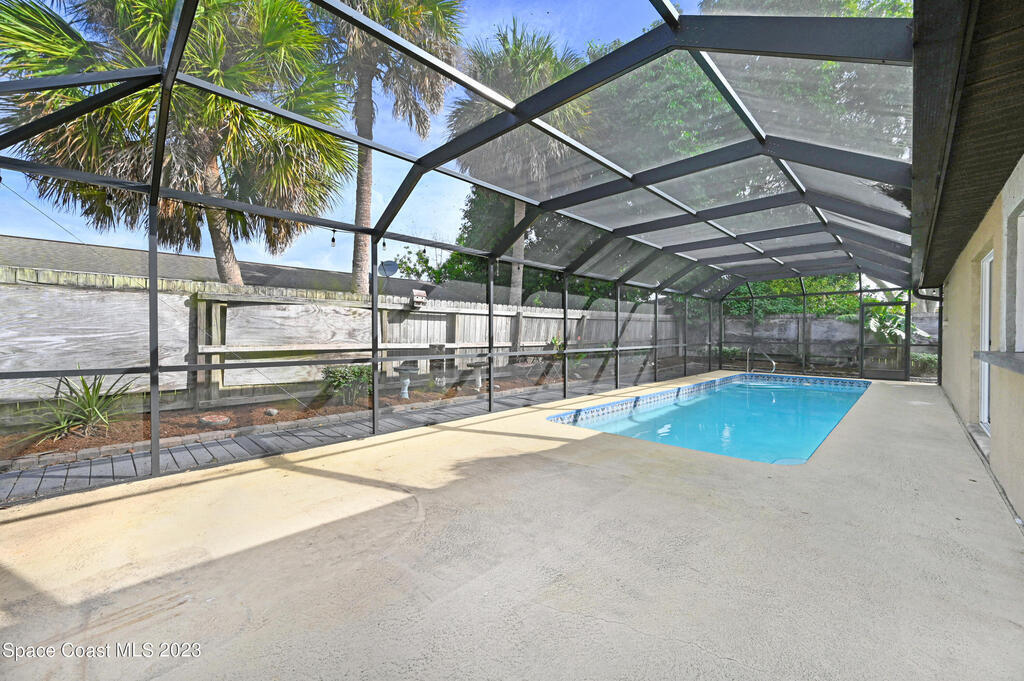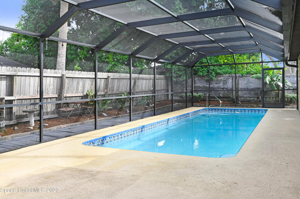 This beautifully landscaped pool home is looking for a new owner. 4 bedroom split floor plan Large living room with a fireplace open to kitchen and dining room. No carpet. Florida room windows can be opened to the pool area for more entertaining space. Close to shopping and restaurants.