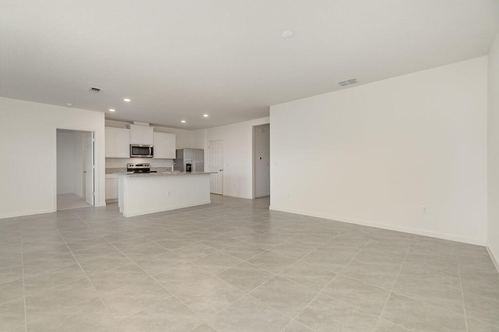 This single-story open layout home has 3 Bedrooms, 2 Bathrooms, 2-Car Garage, a separate laundry room, oversized living room, Kitchen has 36'' white cabinets staggered with crown molding, stainless steel appliances, pantry and counter height Island. Photos used for illustrative purposes and do not depict actual home.