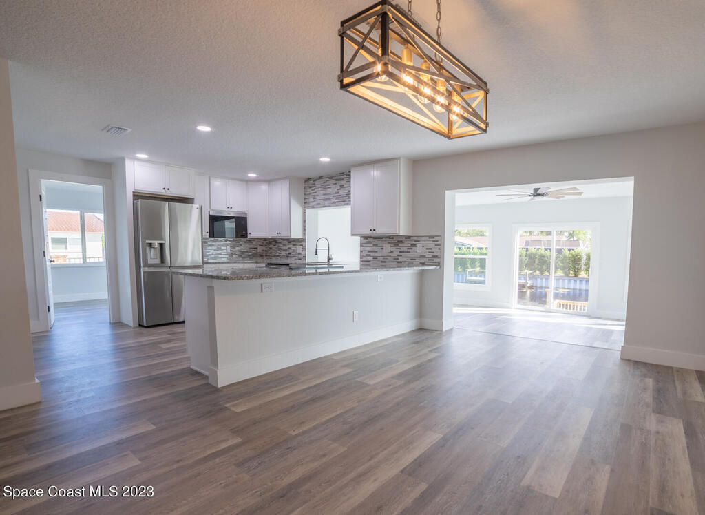 Enjoy the Beautiful sunsets in this wonderfully Remodeled Canal Front Home! This gorgeous home has been recently updated with a Roof, Soffit, Insulation, Windows, Interior/Exterior Doors, Solid Wood Kitchen Cabinets, Granite Tops and much more! All bathrooms are remodeled with walk in showers along with toilets, vanities, flooring for a complete update. Floor plan features 5bedrooms, 2Baths, an Open Floor Plan Concept plus a Great Bonus Area under air with large windows and sep office! You will fall in love with the architecture design and the modern appliances. Kitchen has a large granite top for extra entertaining & seating room. Also you have a private dock to fish or sit and have your own piece of paradise on huge South Lake. OWNER FINANCING AVAILABLE