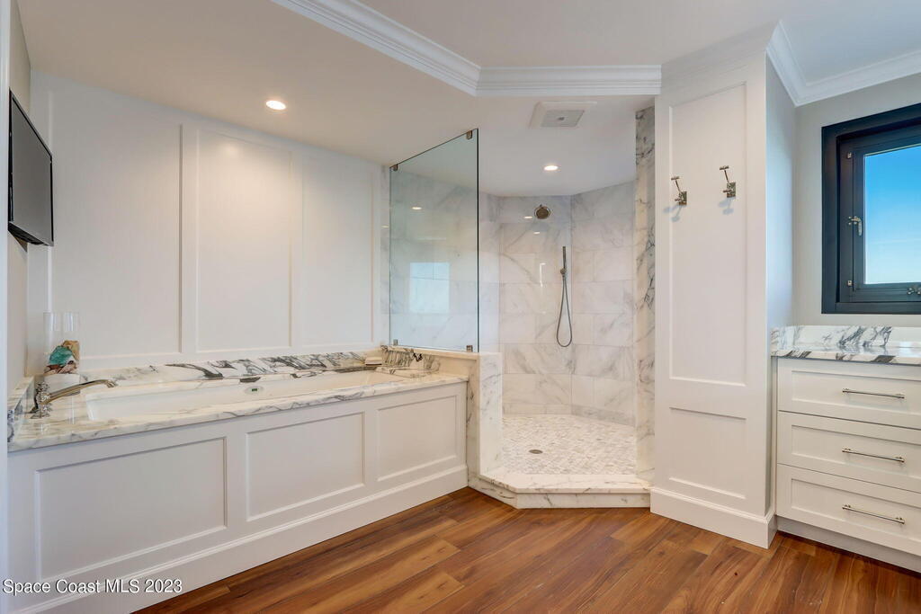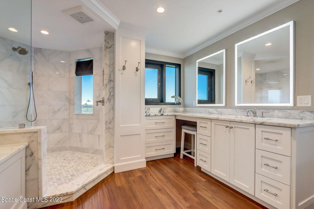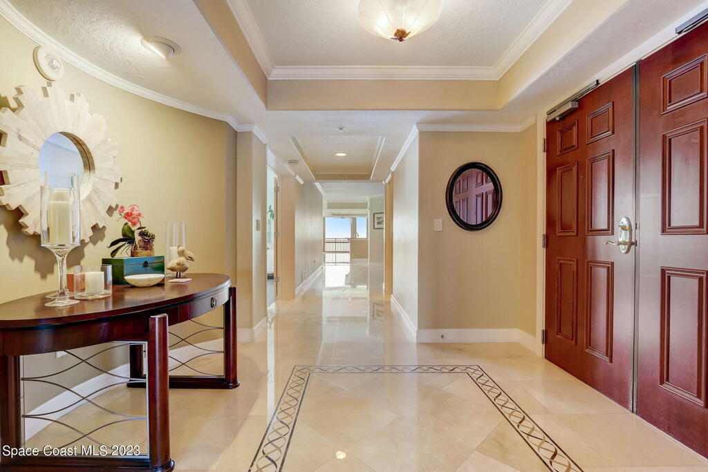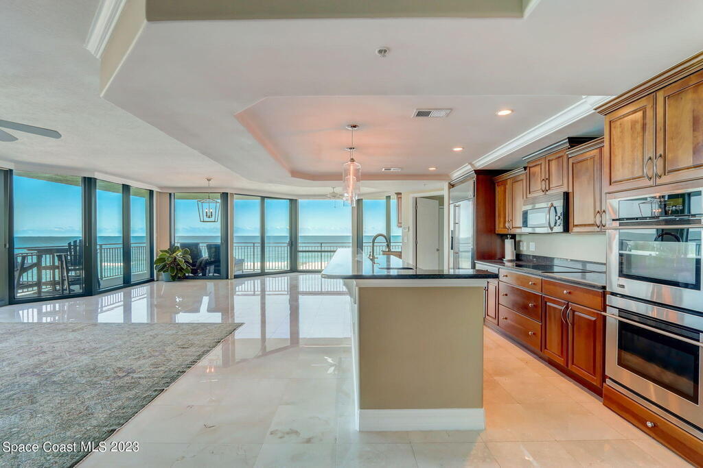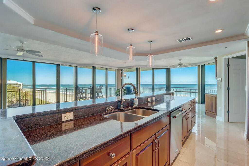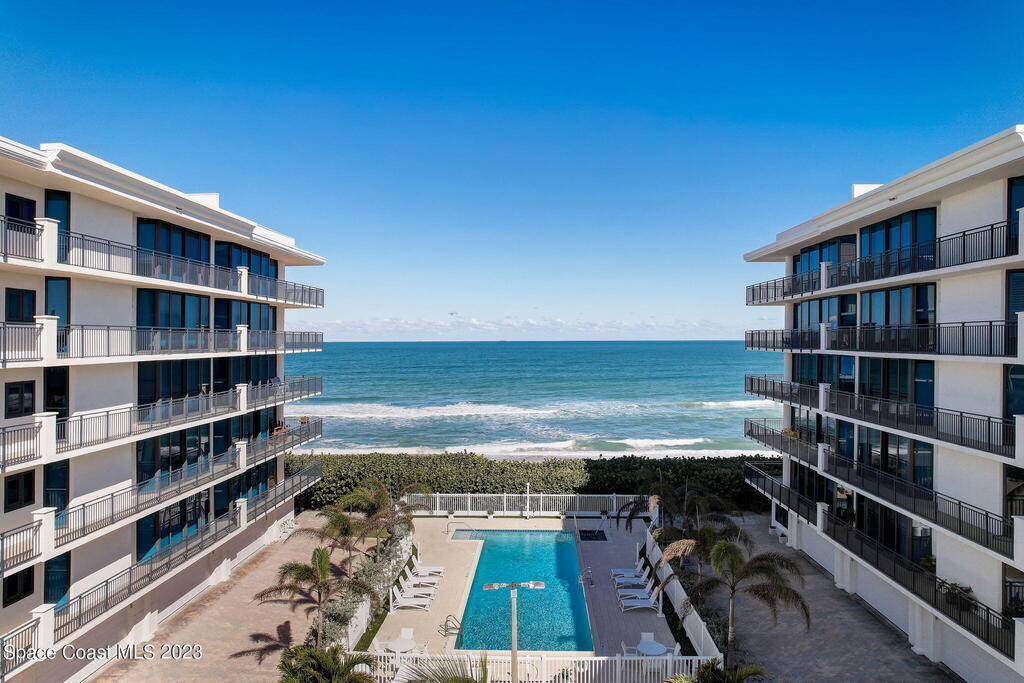 The ocean views from this 3rd floor DIRECT OCEAN condo with unobstructed views to the East and North are unbeatable! If you can see past the sweeping views and wrap around balcony you will be wowed by the high end finishes throughout. Timeless luxury extends from the kitchen and butler's pantry to the recently renovated Primary Suite with stunning designer details and of course, another ocean view! Upgrades include, marble counters, whirlpool tub, tiled shower, his and her sinks, and large walk in closet. With 4 bedrooms, 3 of which are en suites, there is room for many. A large storage room plus laundry room makes this condo ideal as a full time residence or vacation home. Private 2 car garage under the building, 25m pool, and private beach access! Watch rockets launch past to the North.