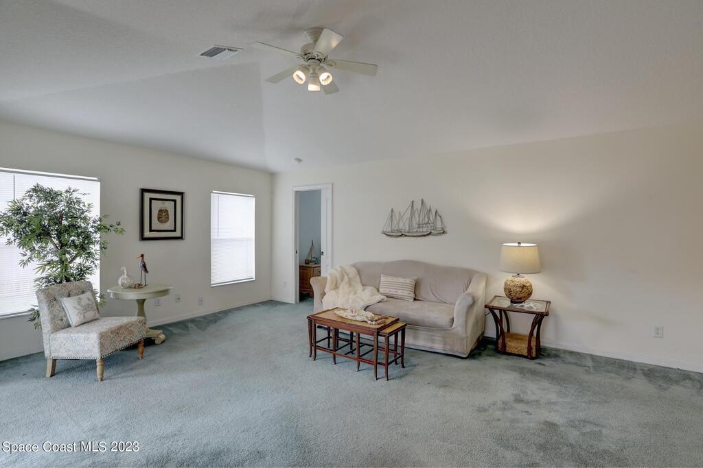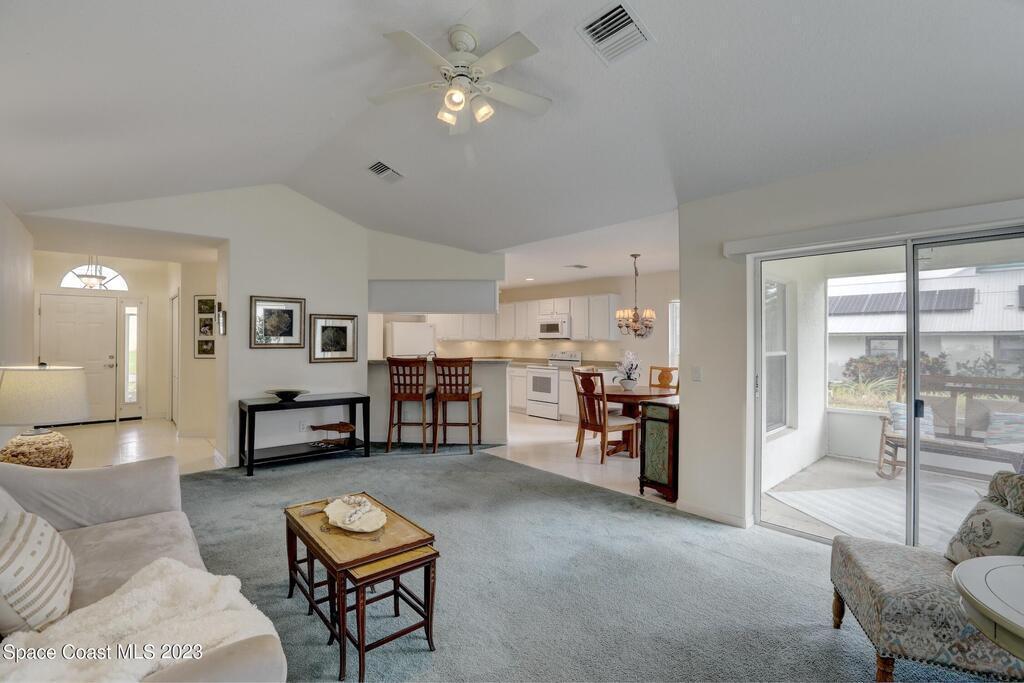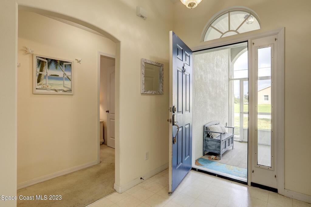 Spacious half acre corner lot a block from the Intercoastal Waterway. Poured concrete walls. New architectural shingle roof in 2023. Great Room is perfect when friends and family come to visit. Inside bonus room includes washer & dryer. Sliding glass doors lead to screen porch and enormous backyard.