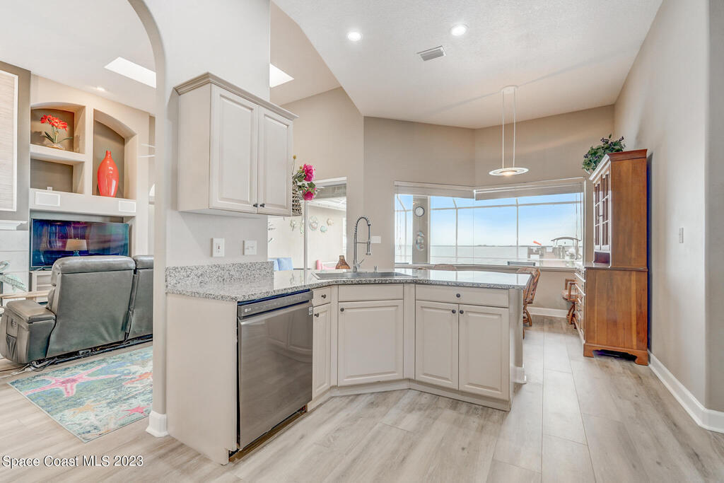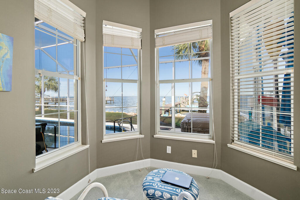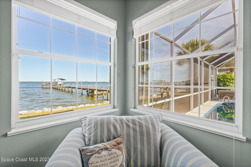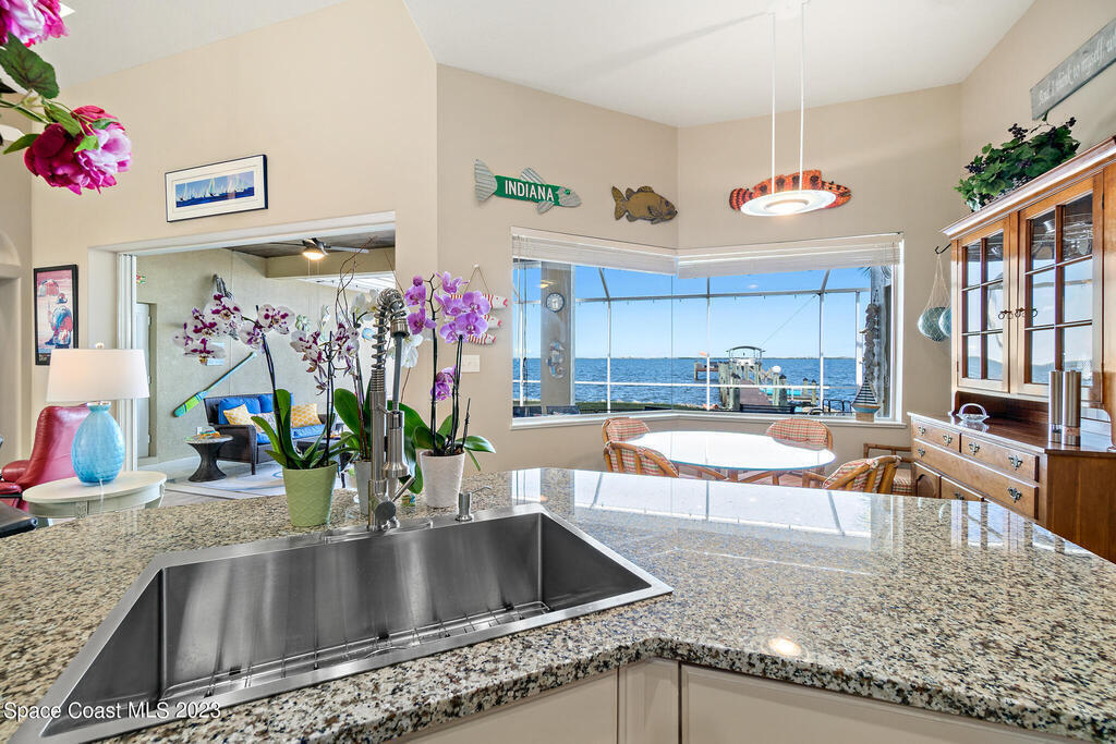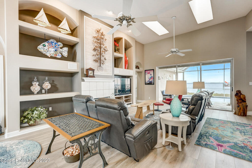RIVERFRONT POOL HOME, the perfect BOATERS PARADISE with 5 foot draft at the end of the 160ft Dock with a new 10k lbs Boat lift. NEW ROOF 2024 with 25 Year non prorated transferrable Warranty. A kayak deck for easy on and off. Enjoy a day on the water and relax pool side with dinner overlooking the Banana River. Open the large sliders that make your home flow from indoor to outdoor living, light the gas fireplace giving you the feel of a cool evening Caribbean resort. Tall ceilings, and new tile plank flooring, create the perfection of resort home. Easy maintenance home with rock sea wall, heated pool and granite kitchen counters, Convenient location within minutes of the beach and with easy access to I-95 and the Orlando attractions.