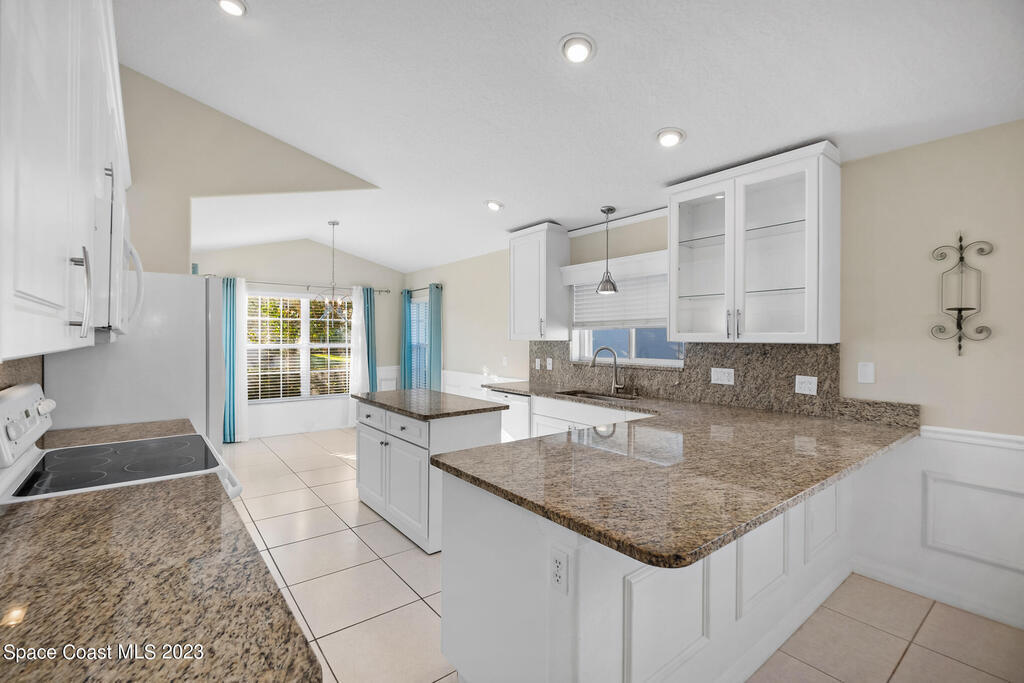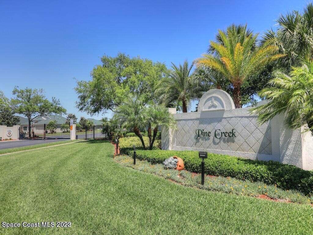 Welcome to this amazing sought after 55+ gated community in Pine Creek. This 3-bedroom home has a BRAND NEW ROOF 2023 / BRAND NEW A/C as of 12/29/23.The kitchen has some original special touches such as granite counters with matching backsplash. The glass cabinet gives a special glow when it lights up. The large open living spaces are tiled floors with Vaulted ceilings that opens up the home. The Florida room is enclosed with windows, blinds, and the whole home has Accordion Shutters for all windows and doors. The Community has neighbors that are involved in many social activities such as corn hole, card nights, special small groups, and parties for most holidays. HOA also includes Cable/ Internet, Lawn & yard maintenance, Painting the house every few years, as well as new paved roads. Join this family community.